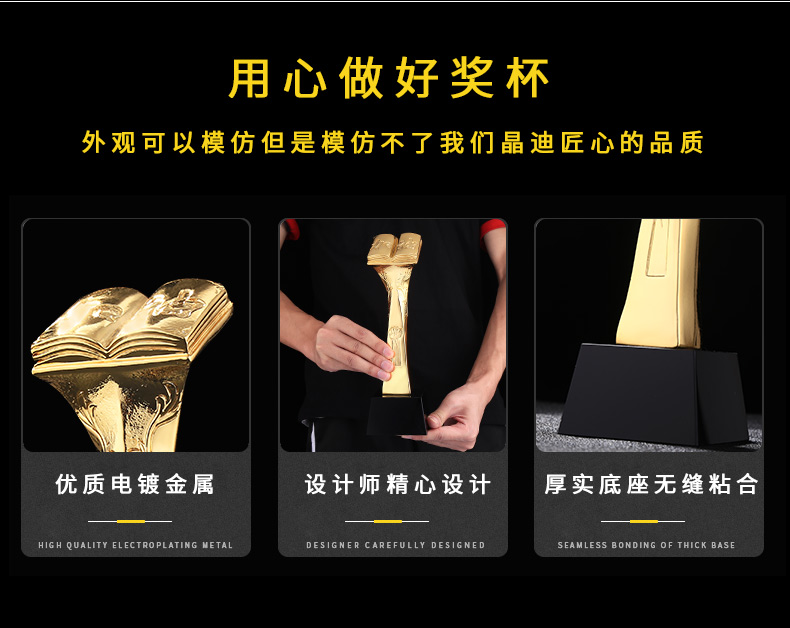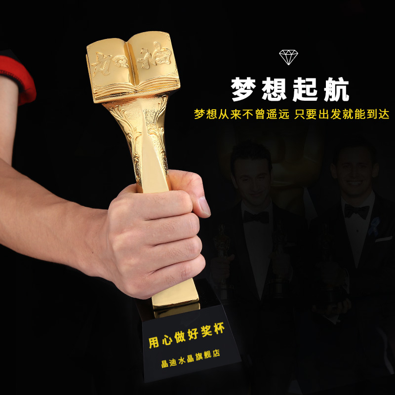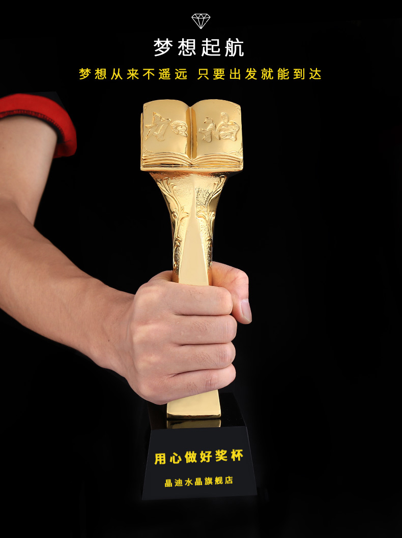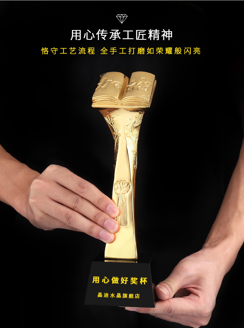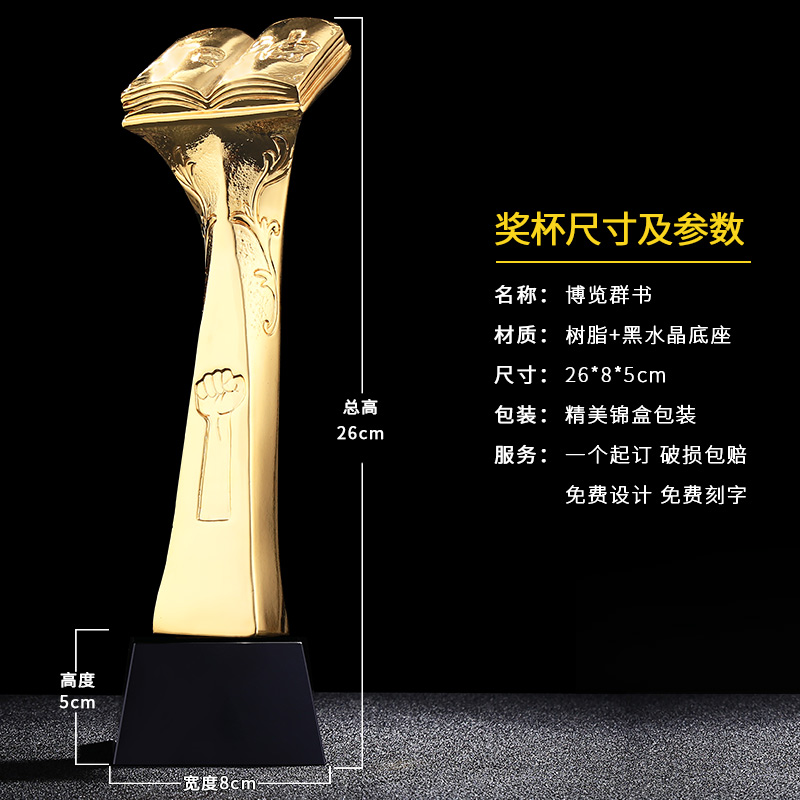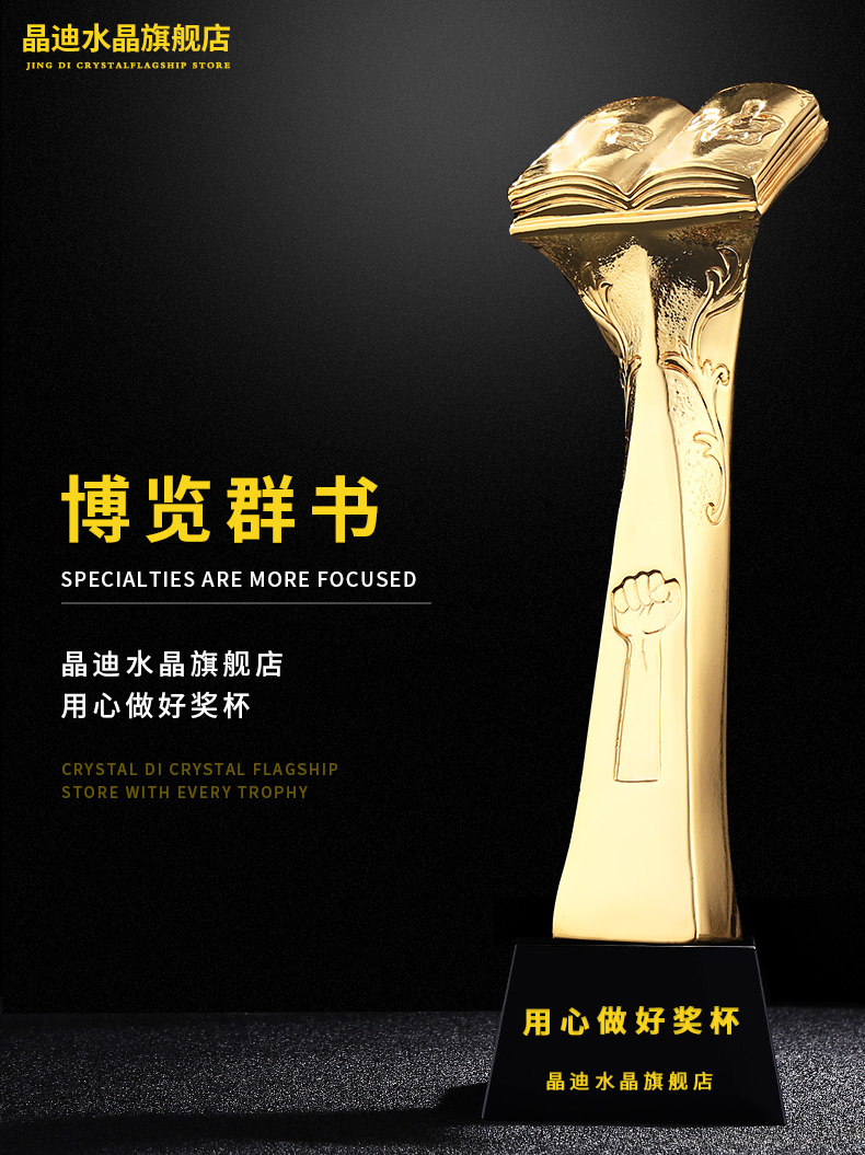 博览群书 镀金奖杯 创意奖杯专业定制 企业员工颁奖礼品订制
