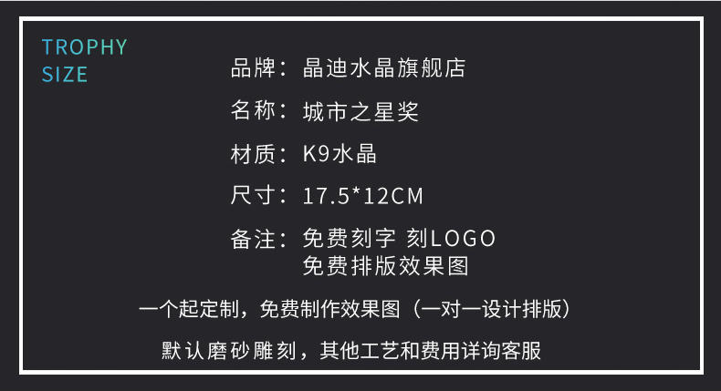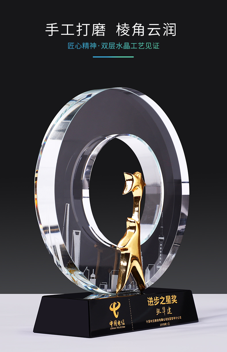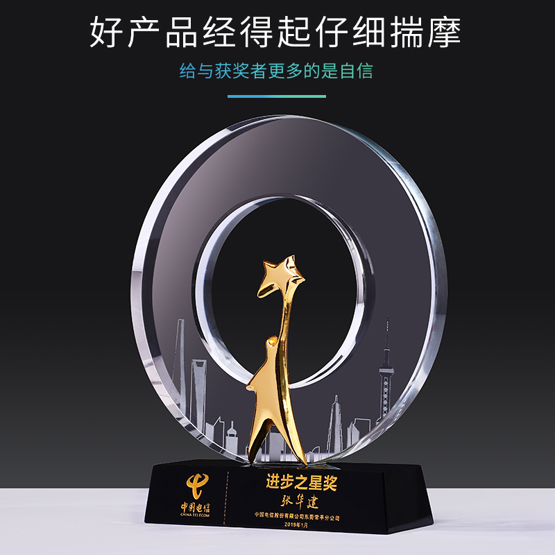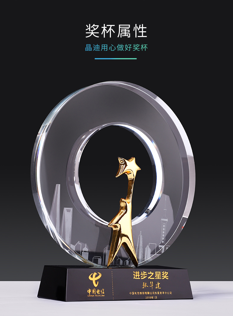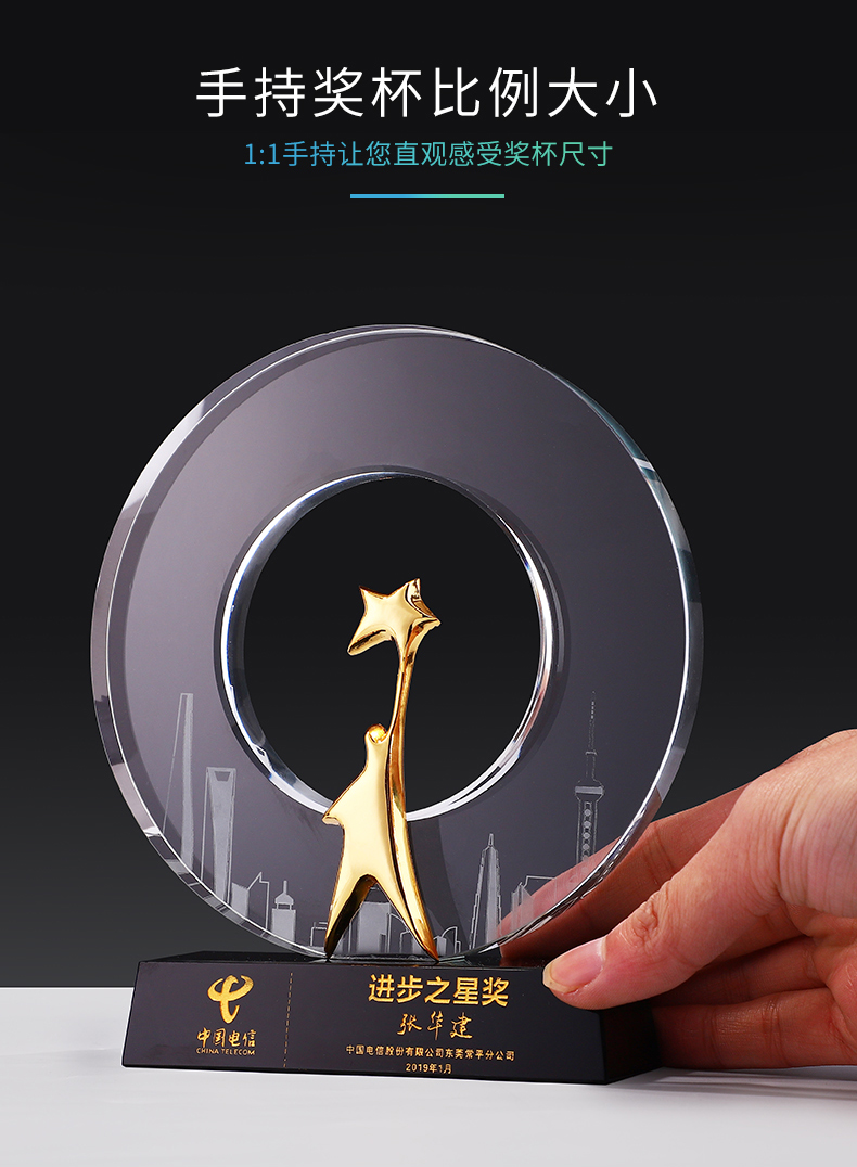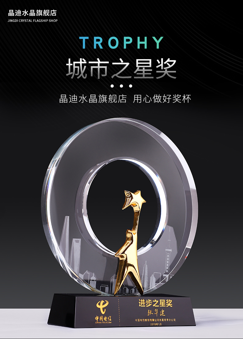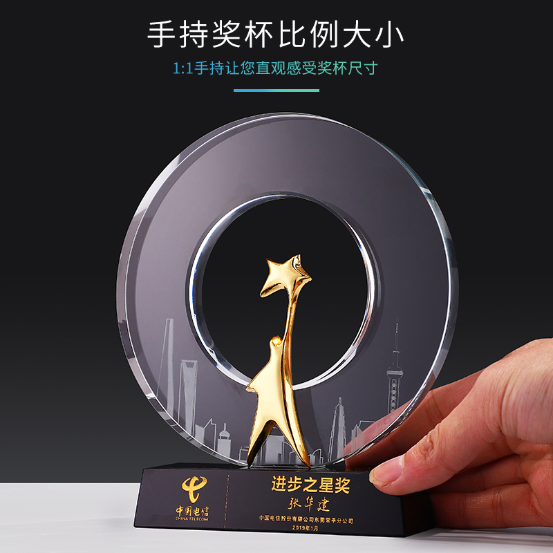 城市之星水晶奖杯创意免费刻字奖牌个性运动会纪念品奖杯定制定做