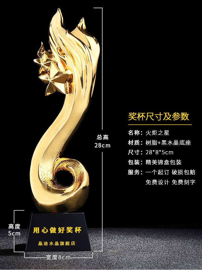 火炬之星 镀金奖杯 创意奖杯专业定制 企业员工颁奖礼品订制