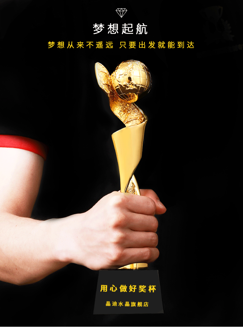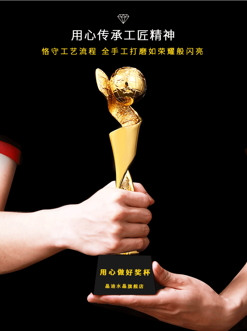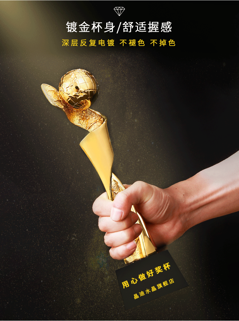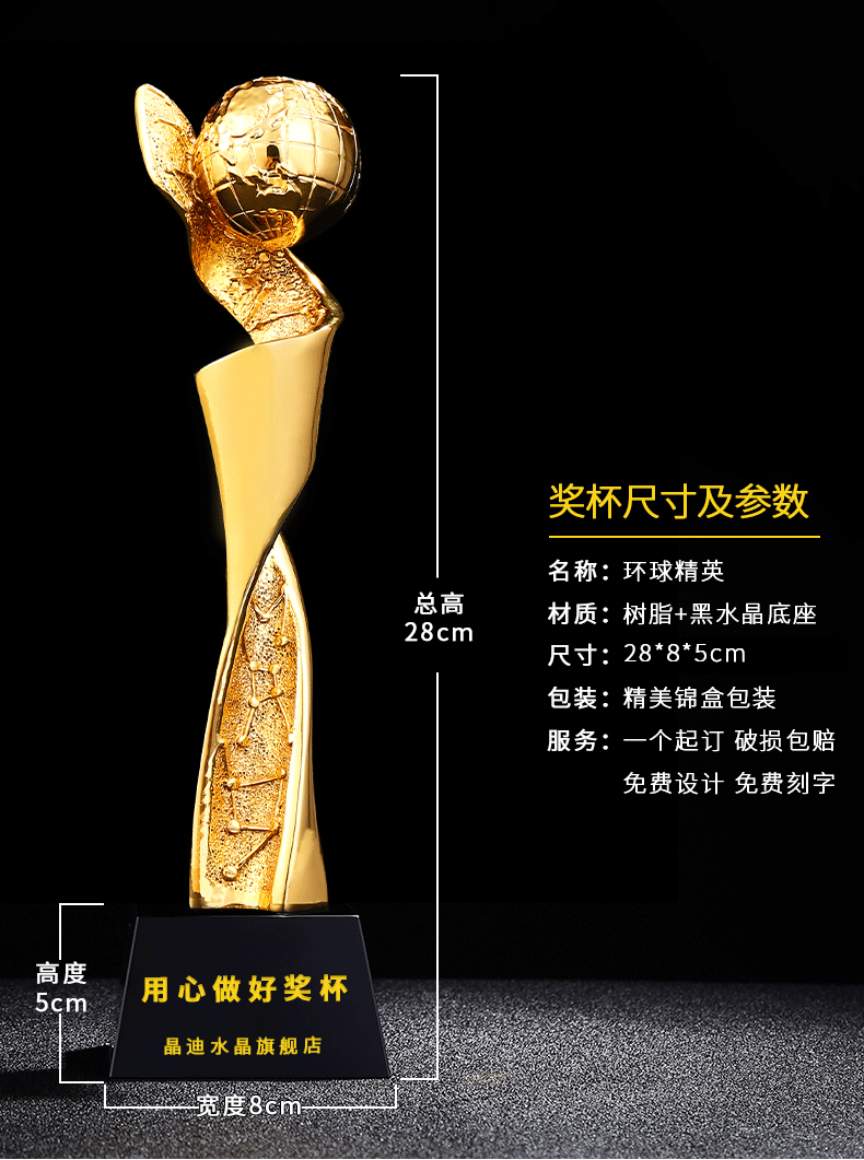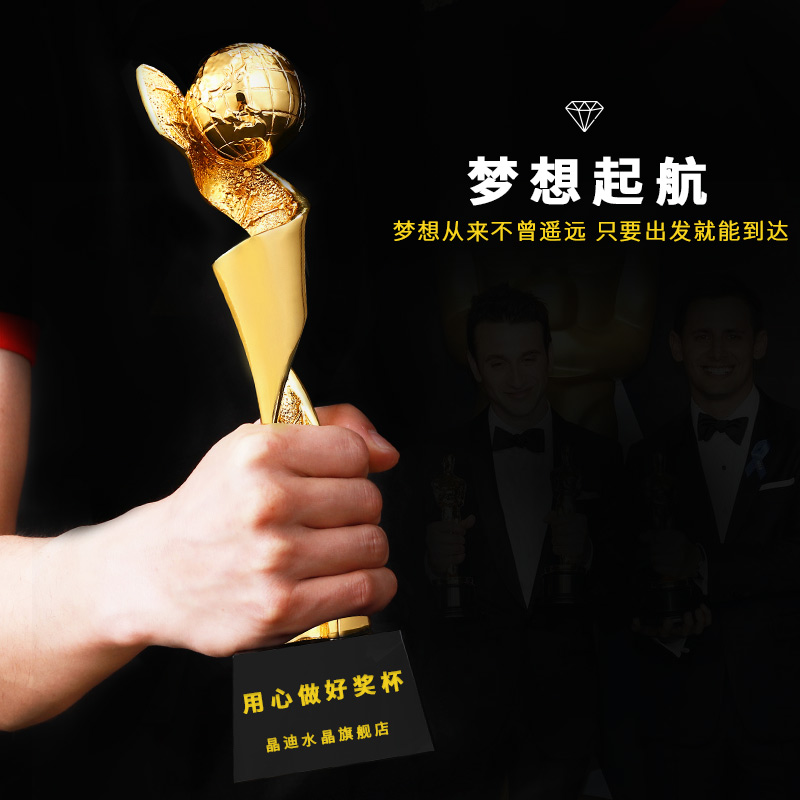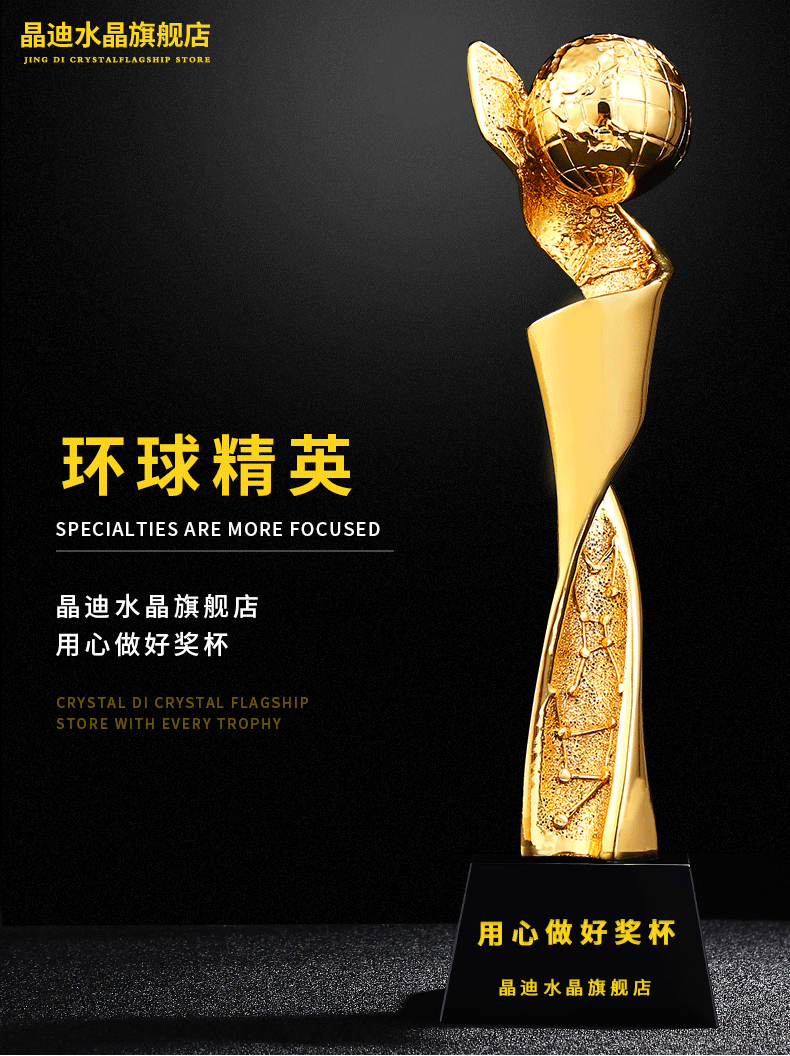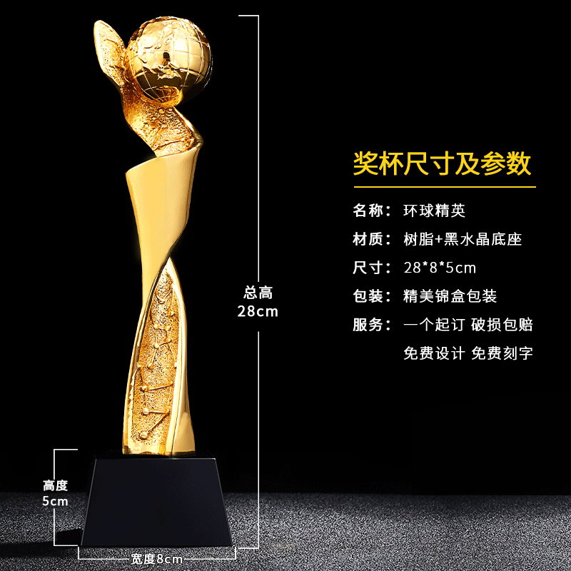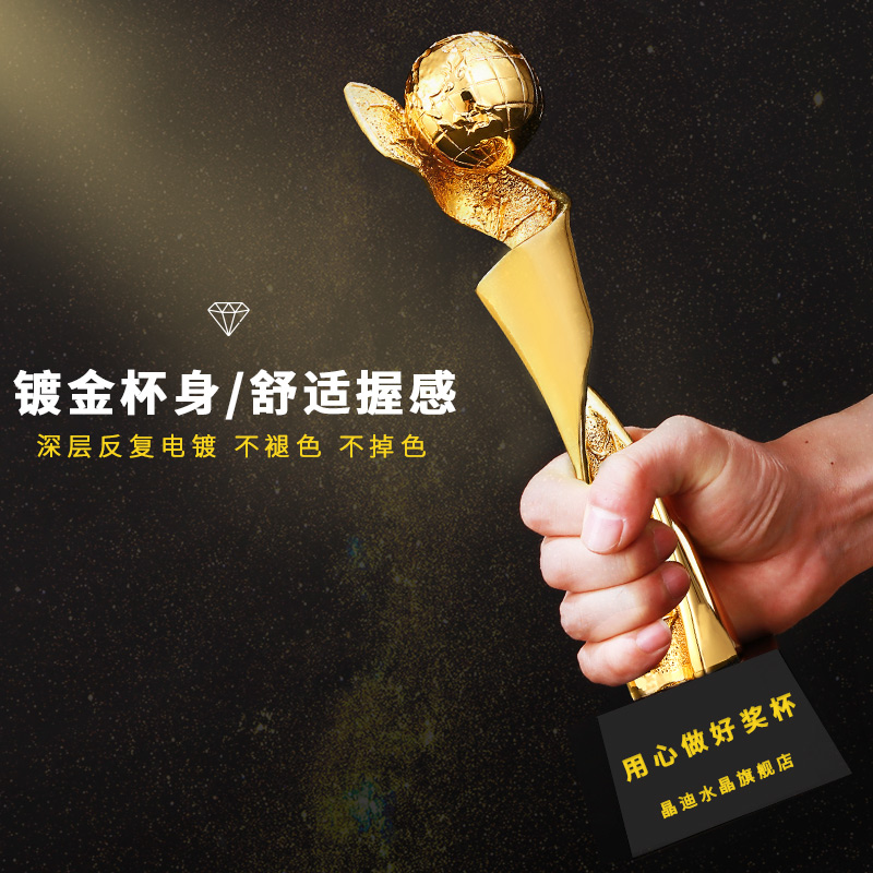 环球精英 镀金奖杯 创意奖杯专业定制 企业员工颁奖礼品订制