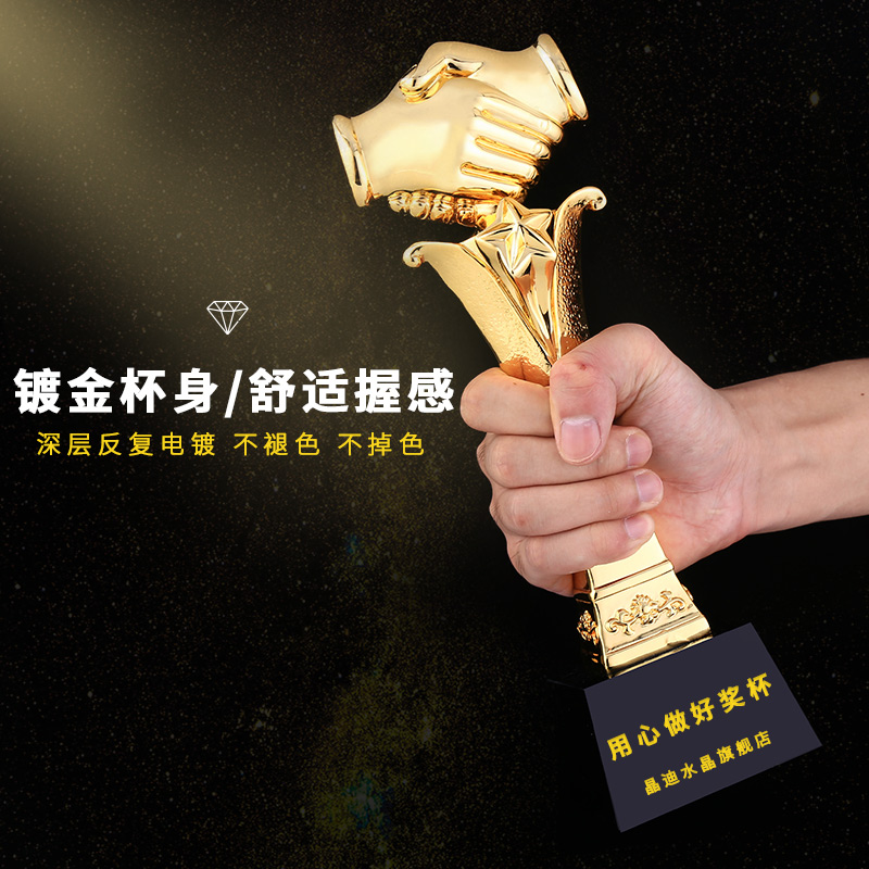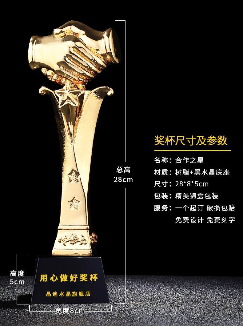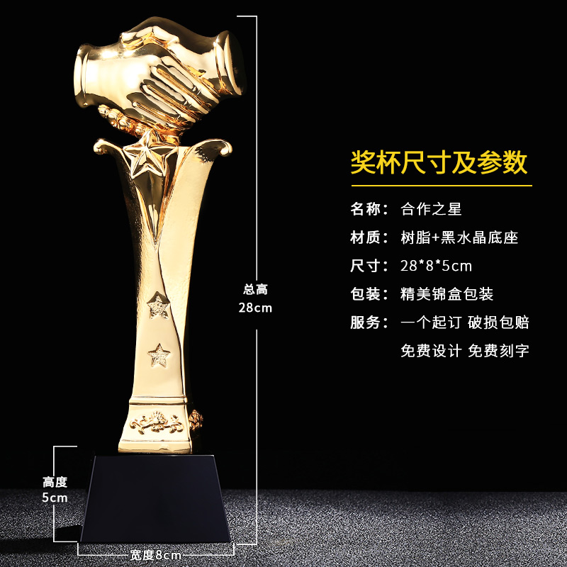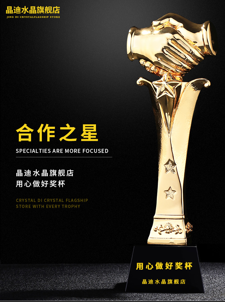 合作之星 镀金奖杯 创意奖杯专业定制 企业员工颁奖礼品订制