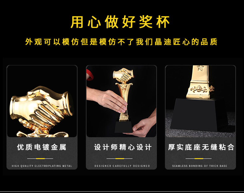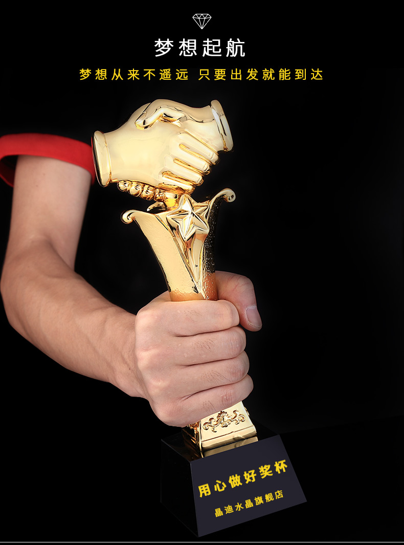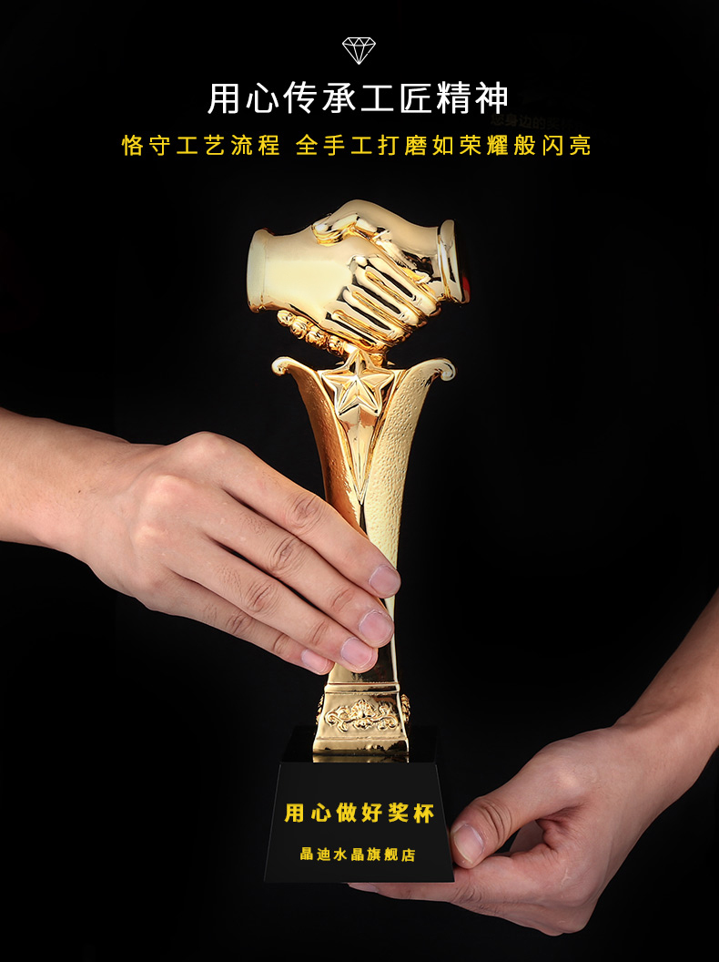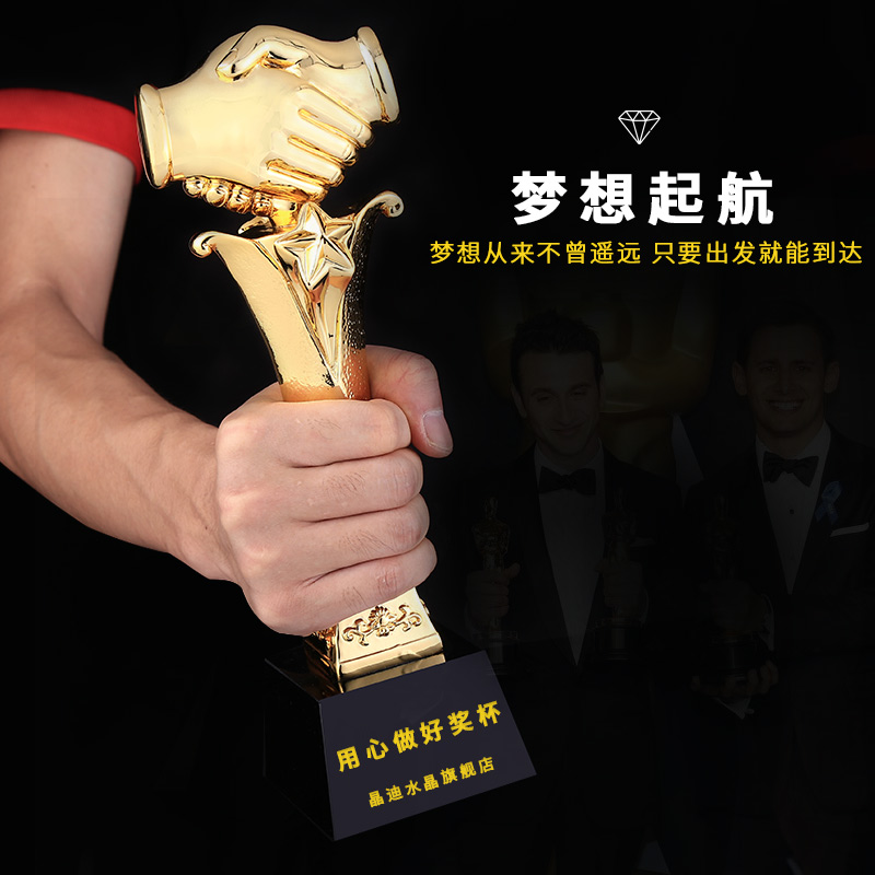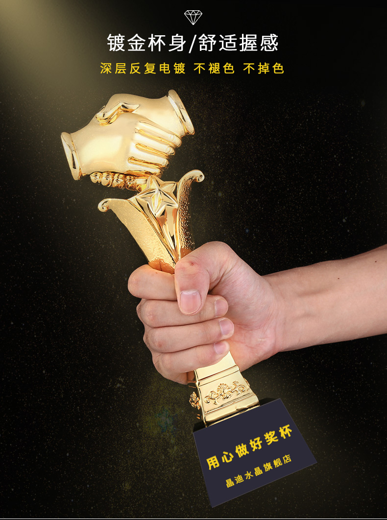 合作之星 镀金奖杯 创意奖杯专业定制 企业员工颁奖礼品订制