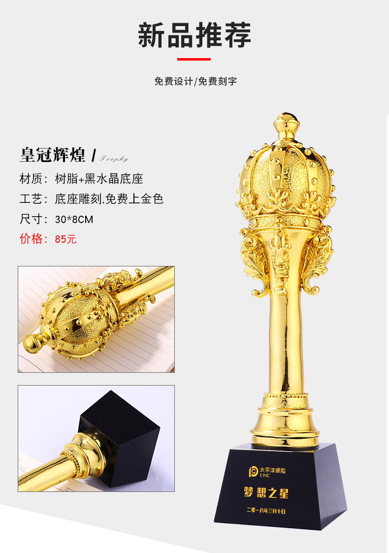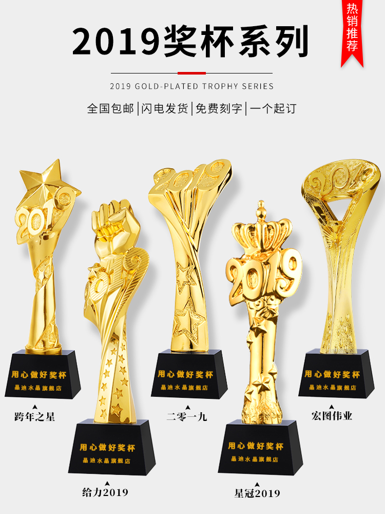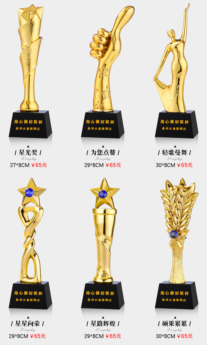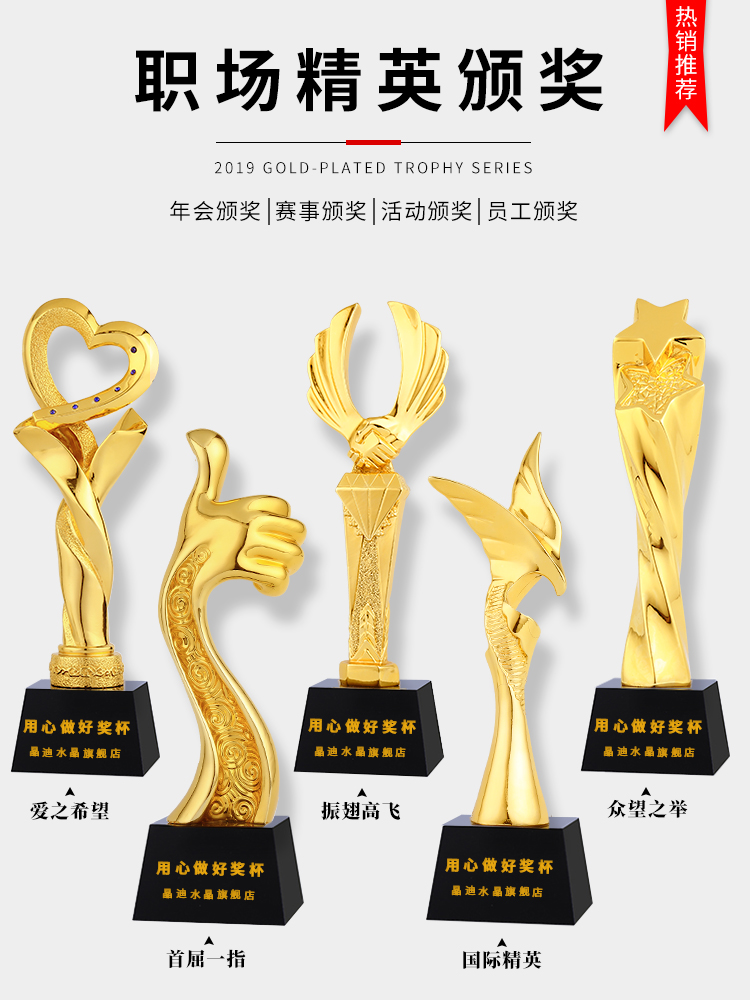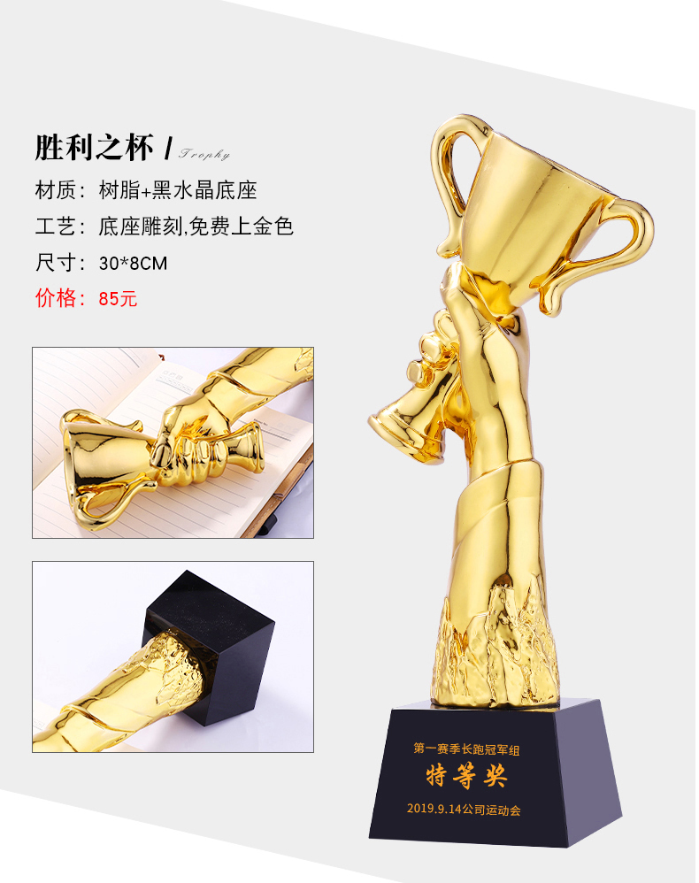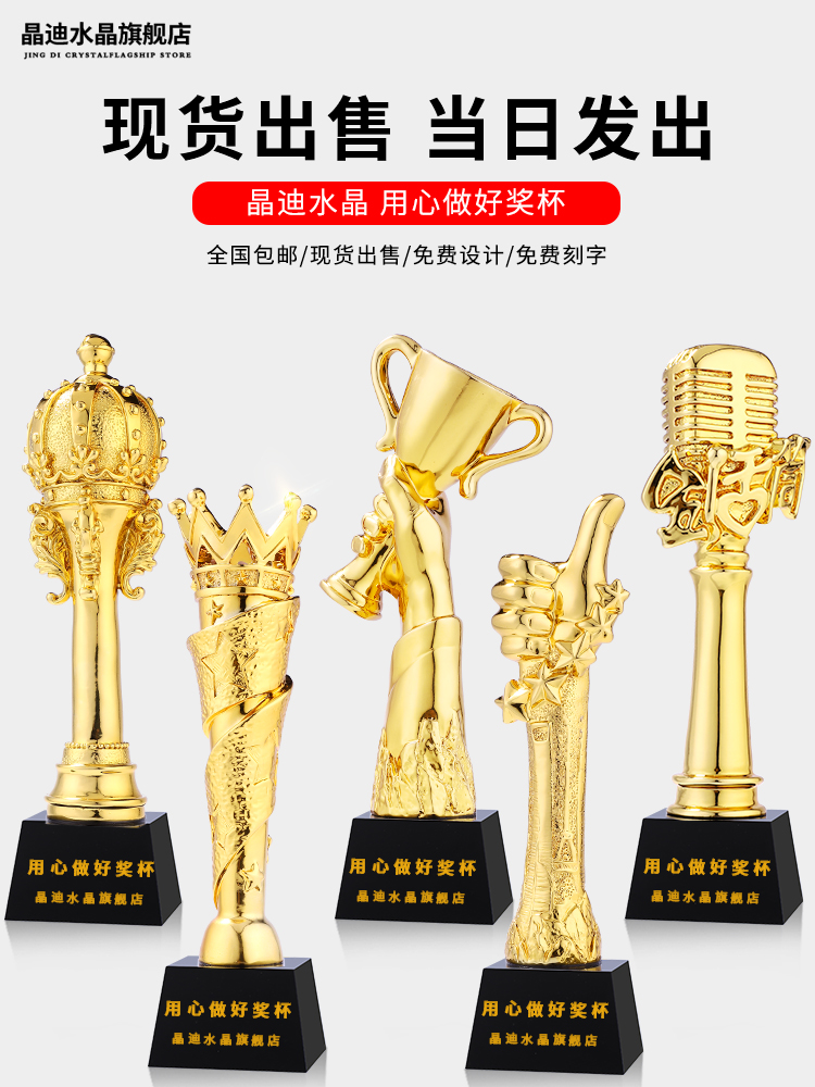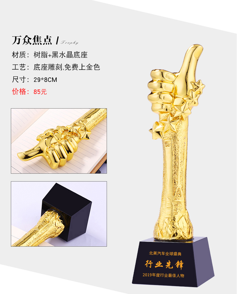 奖杯定制定做年会颁奖创意大拇指授权牌制作刻字奖牌水晶奖杯