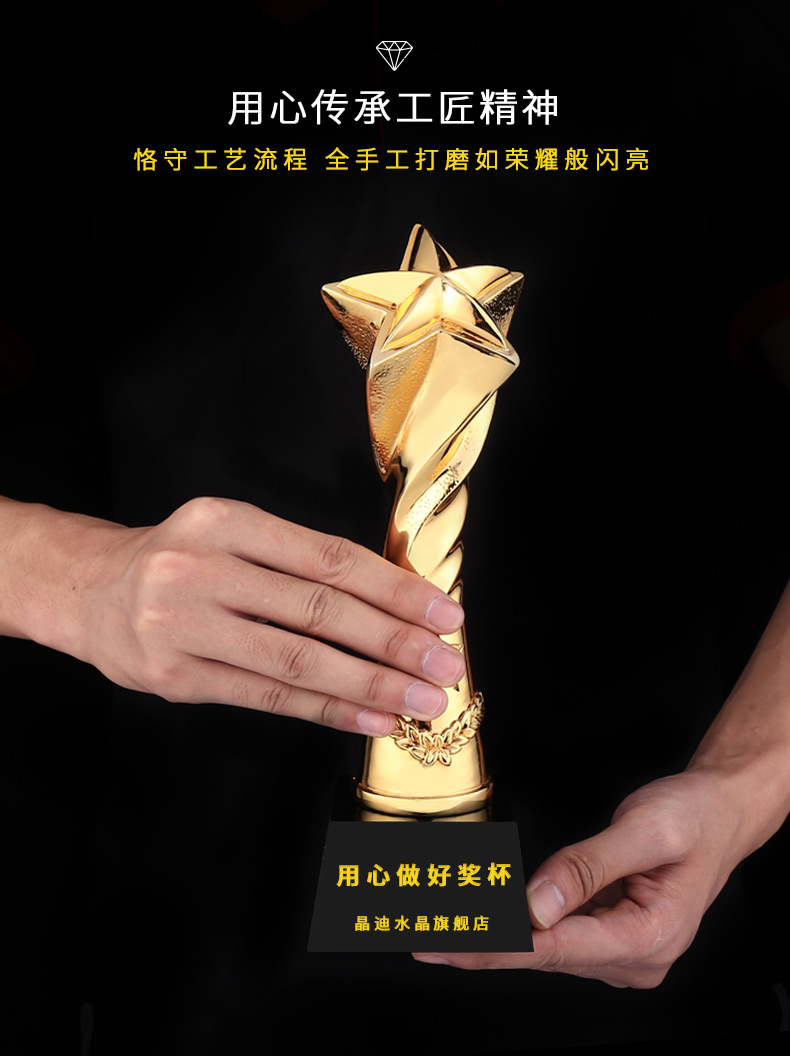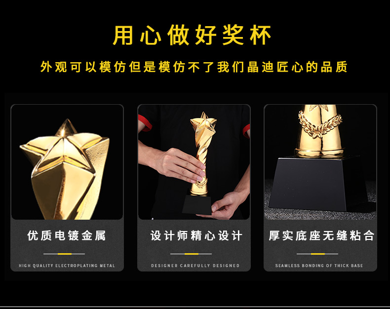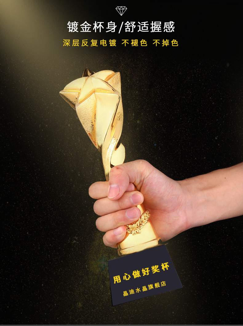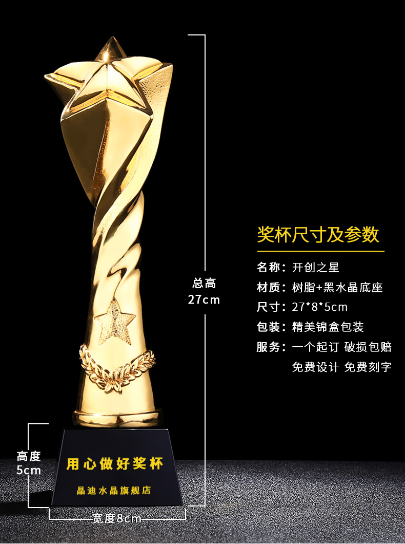 开创之星 镀金奖杯 创意奖杯专业定制 企业员工颁奖礼品订制