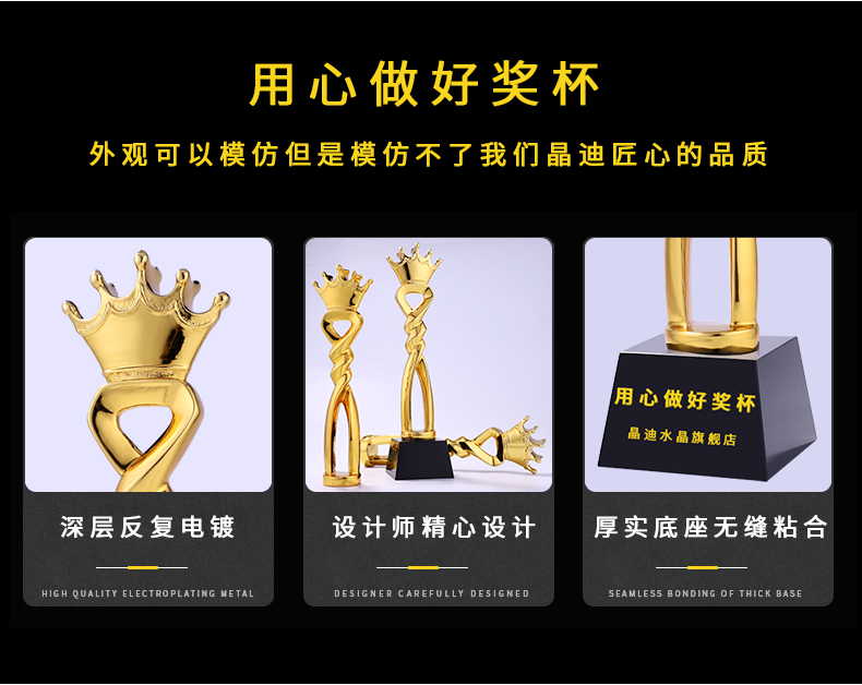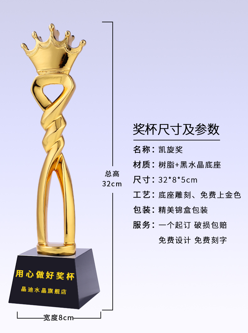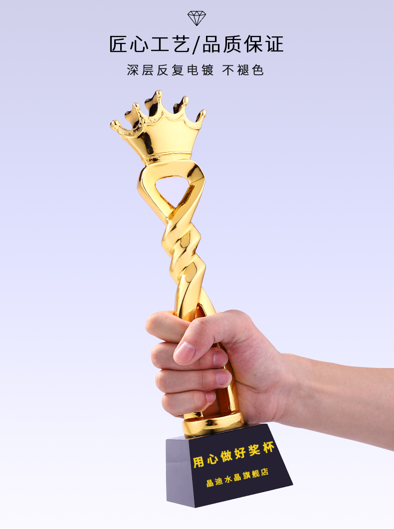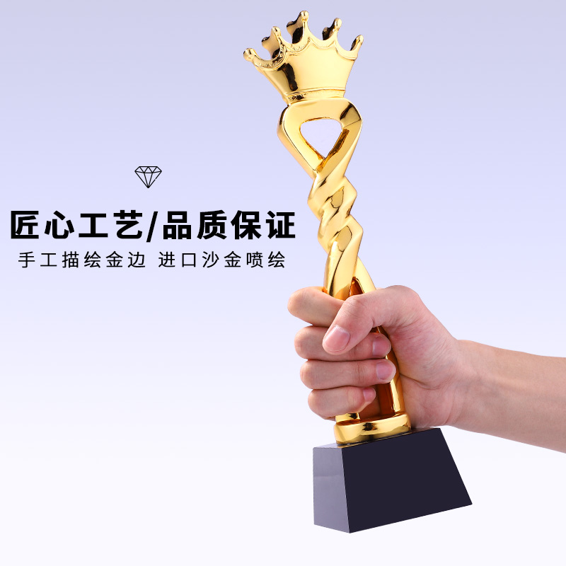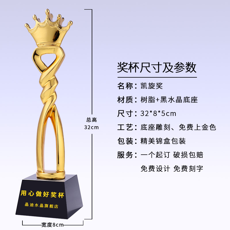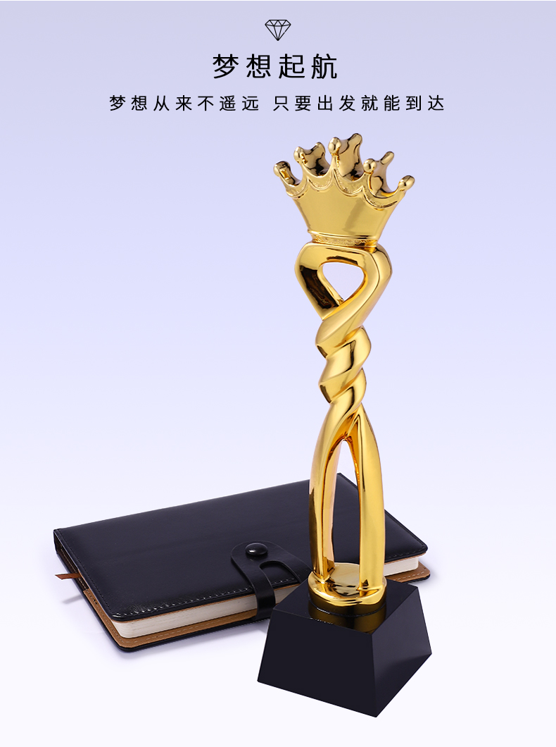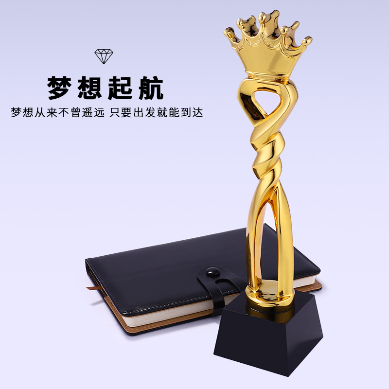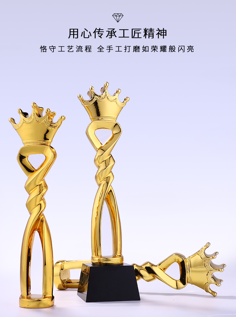 凯旋奖镀金树脂奖杯定制创意爱心奉献皇冠心形刻字奖杯定做