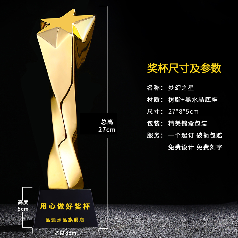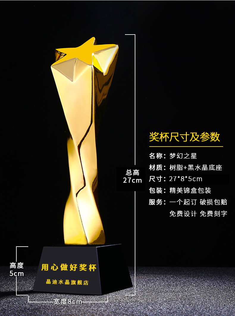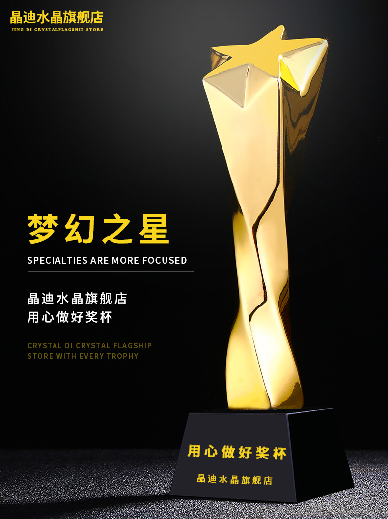 梦幻之星镀金奖杯 创意奖杯专业定制 企业员工颁奖礼品订制