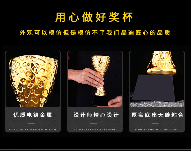 荣誉金杯镀金奖杯 创意奖杯专业定制 企业员工颁奖礼品订制