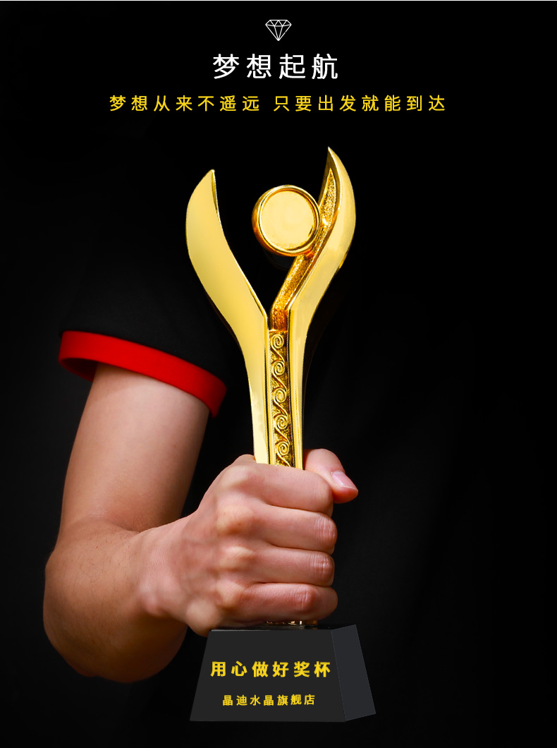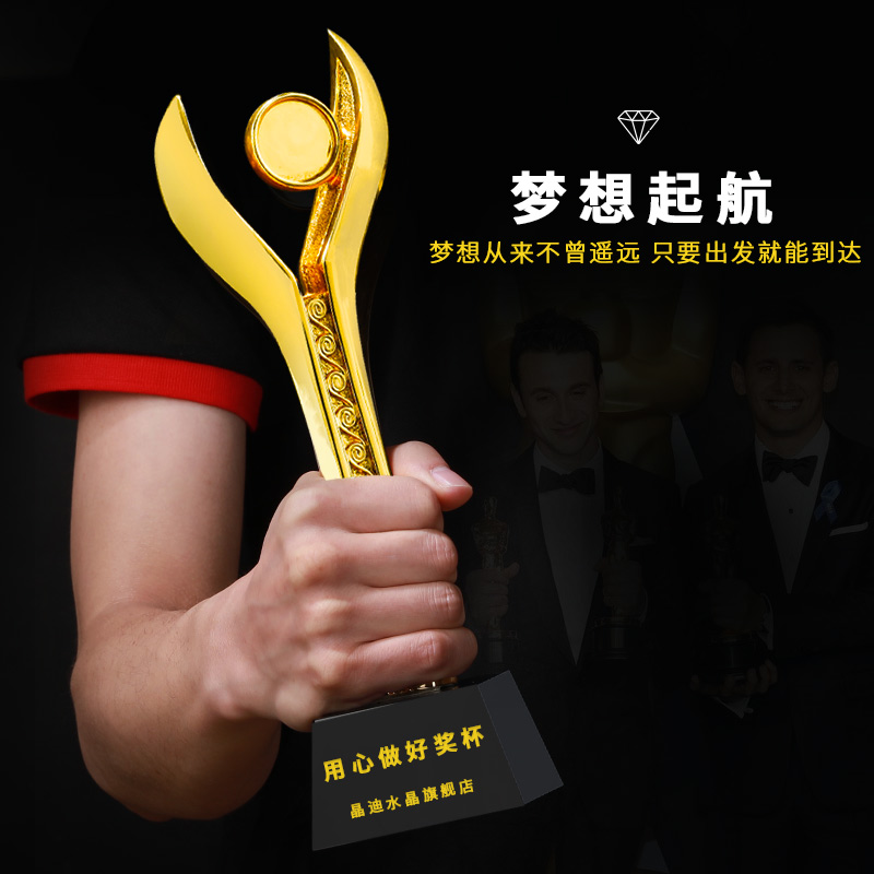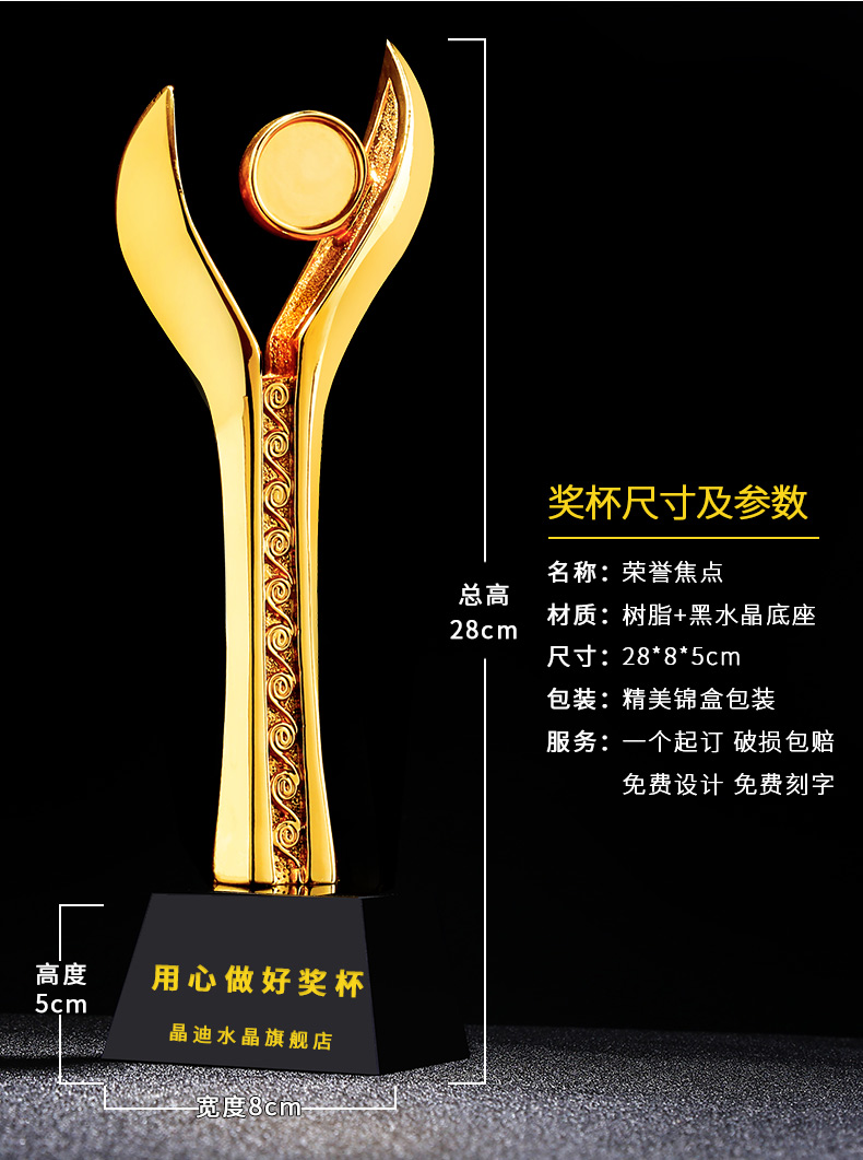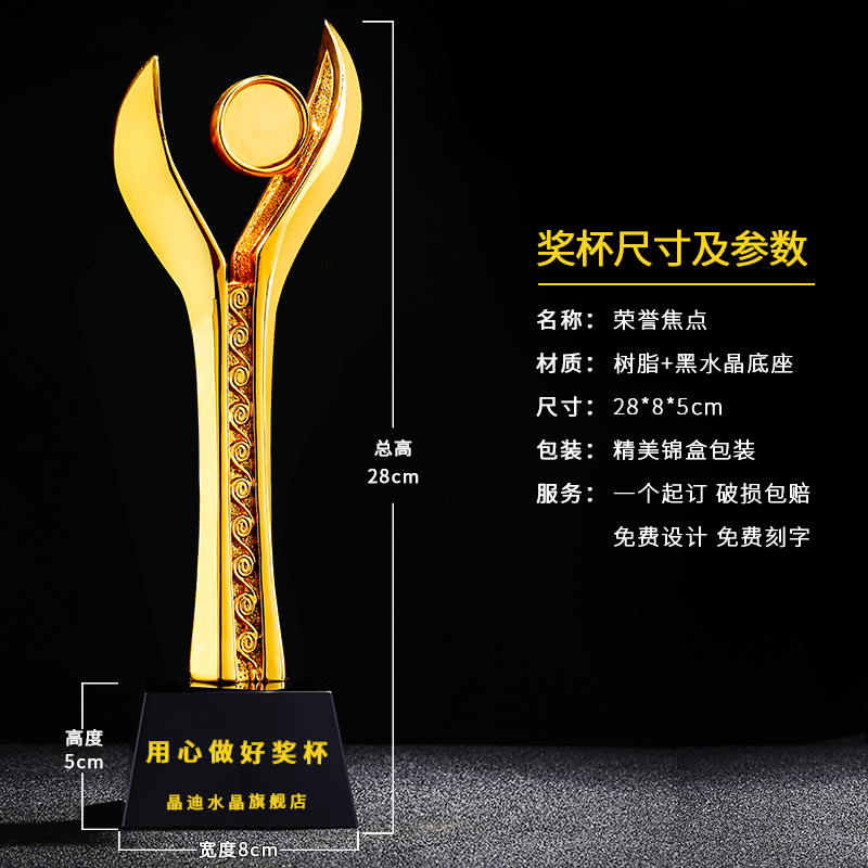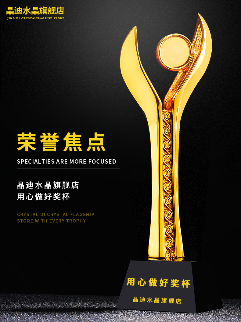荣誉焦点镀金奖杯 创意奖杯专业定制 企业员工颁奖礼品订制