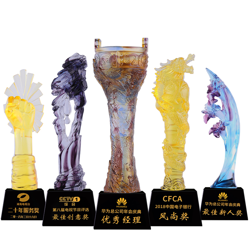 水晶奖杯定制定做公司年会创意比赛颁奖纪念品制作琉璃刻字奖杯