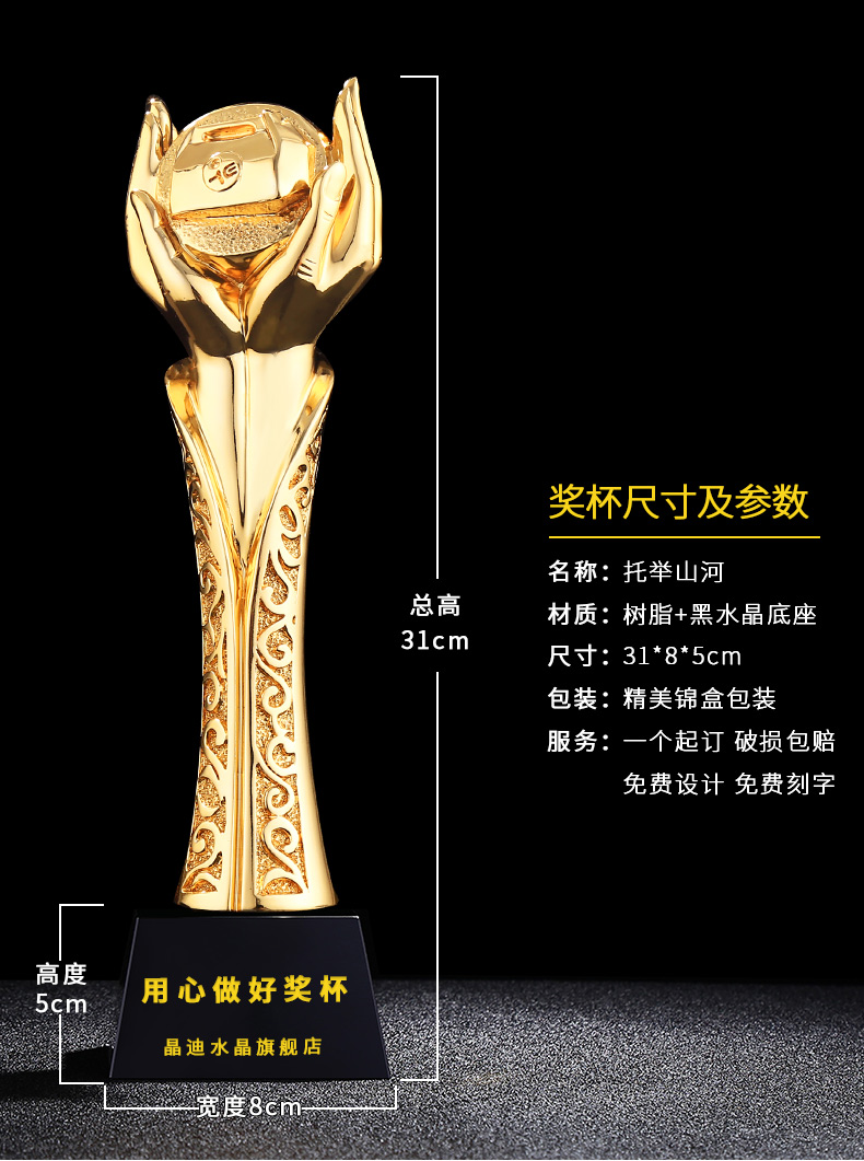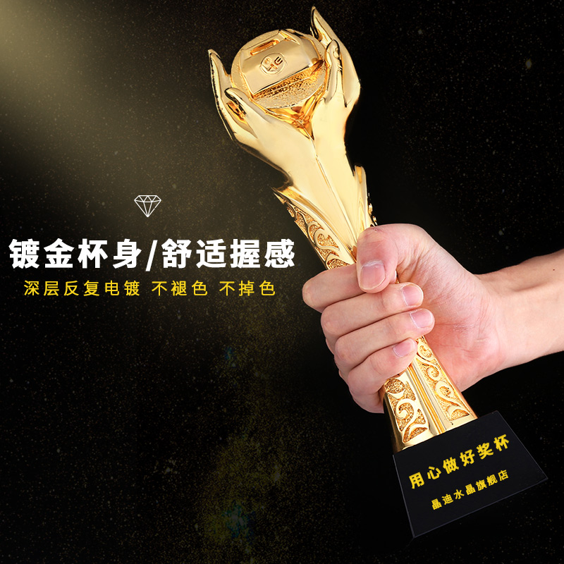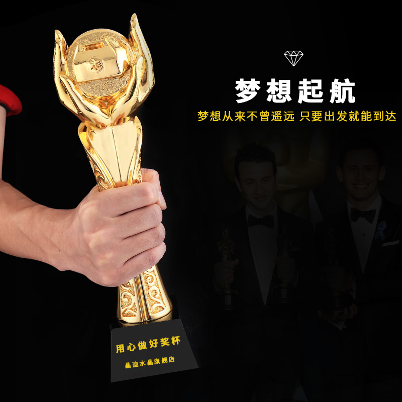 托举山河 镀金奖杯 创意奖杯专业定制 企业员工颁奖礼品订制