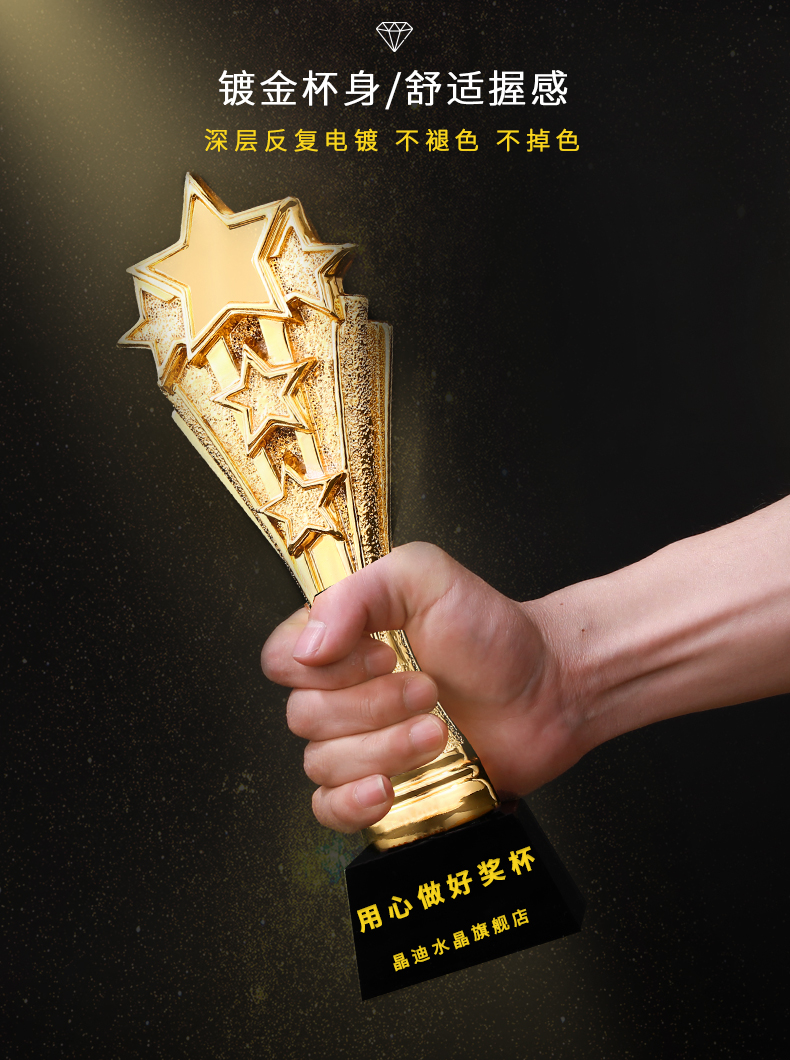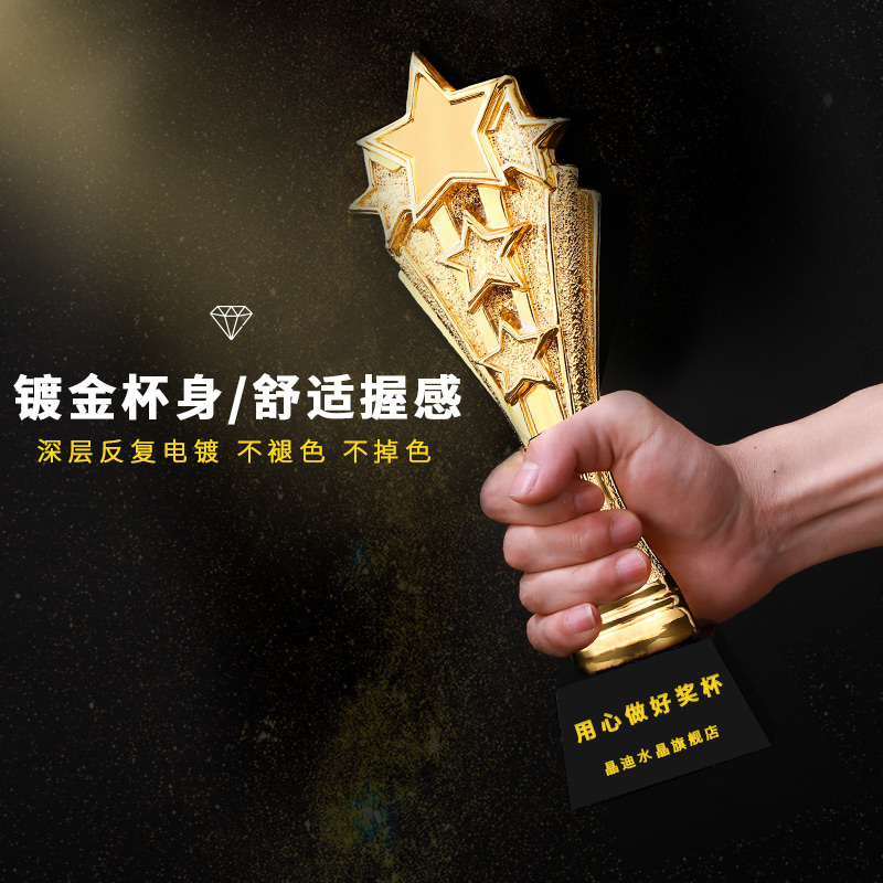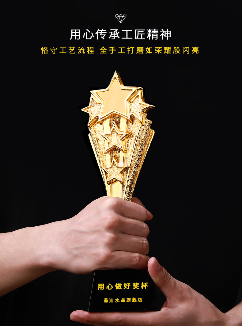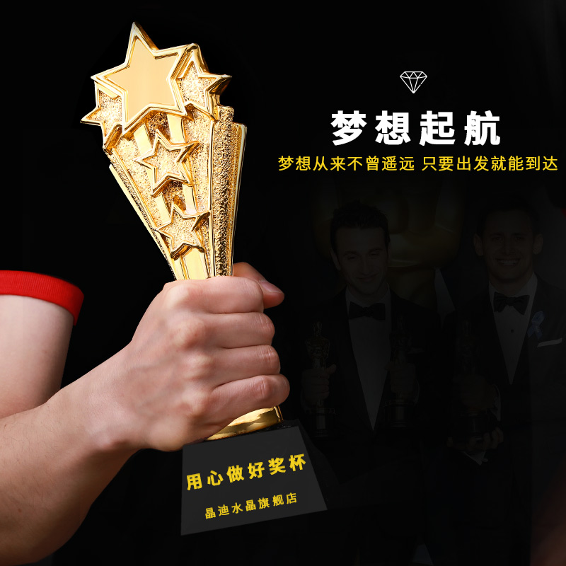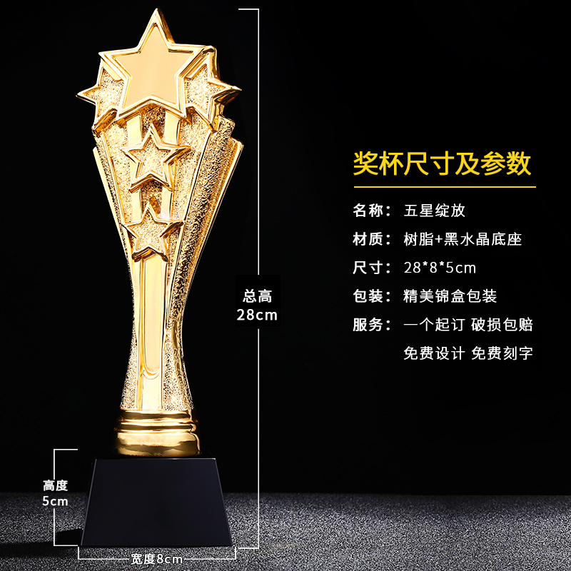 五星绽放 镀金奖杯 创意奖杯专业定制 企业员工颁奖礼品订制