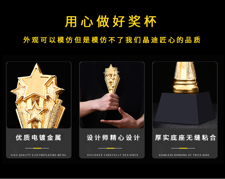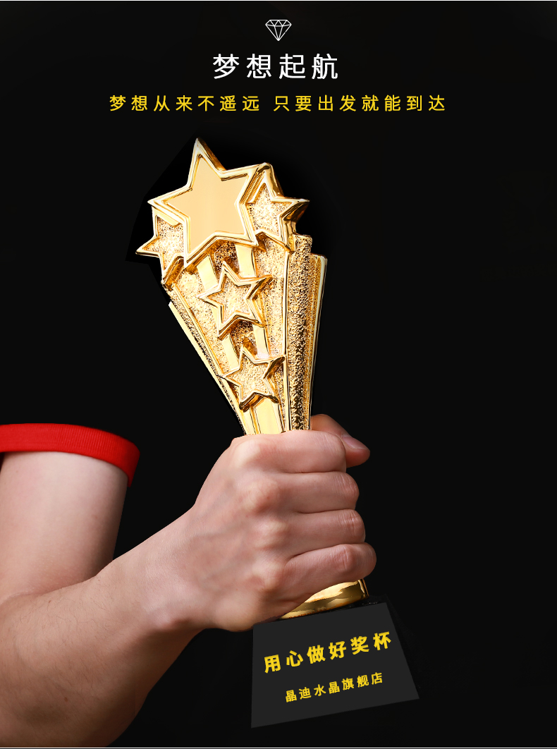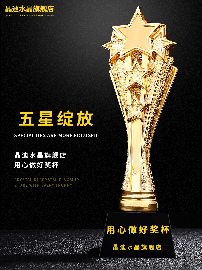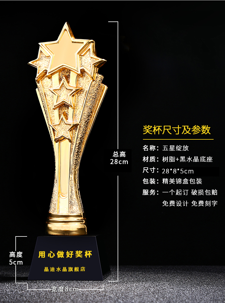 五星绽放 镀金奖杯 创意奖杯专业定制 企业员工颁奖礼品订制