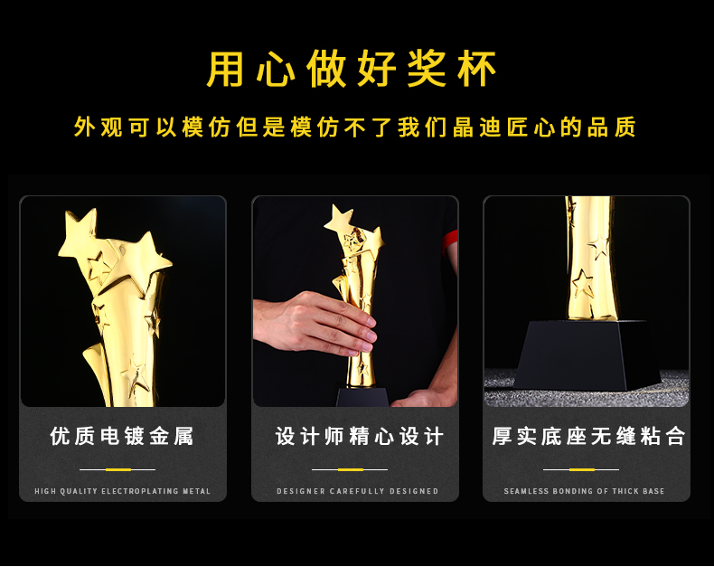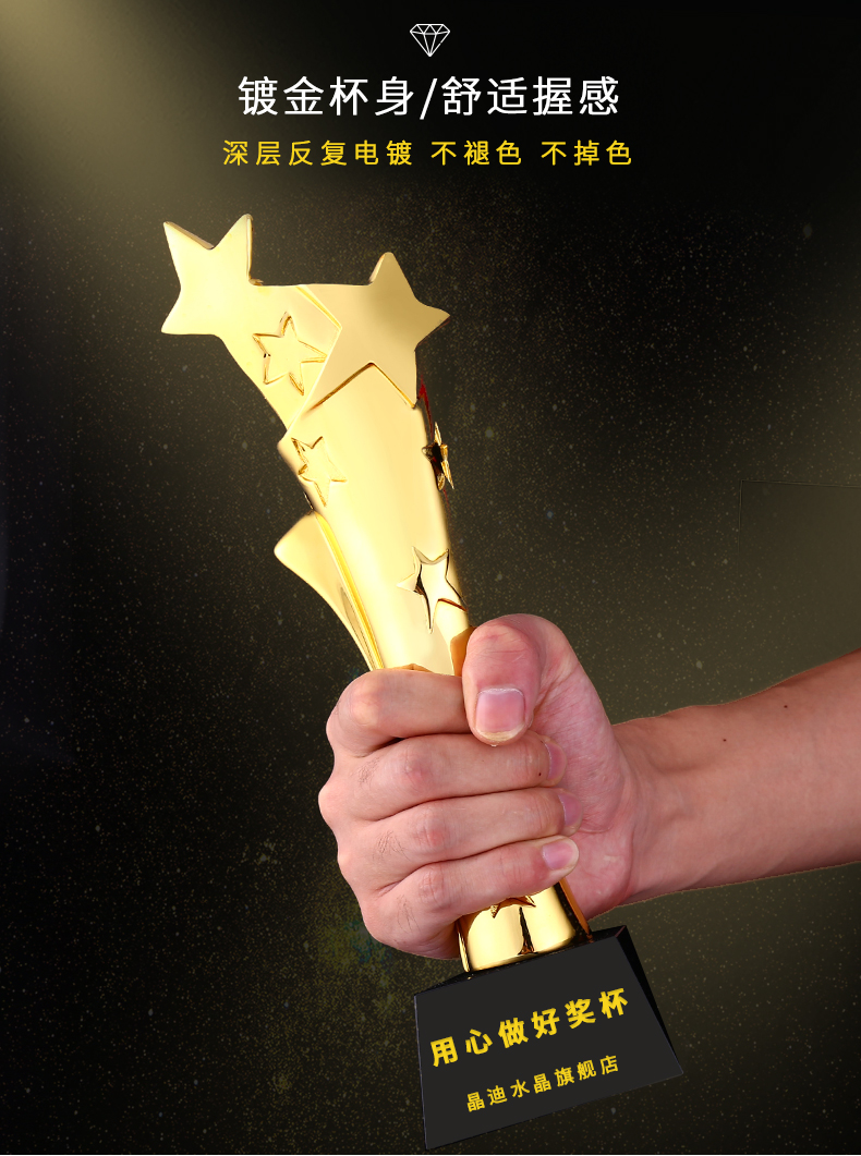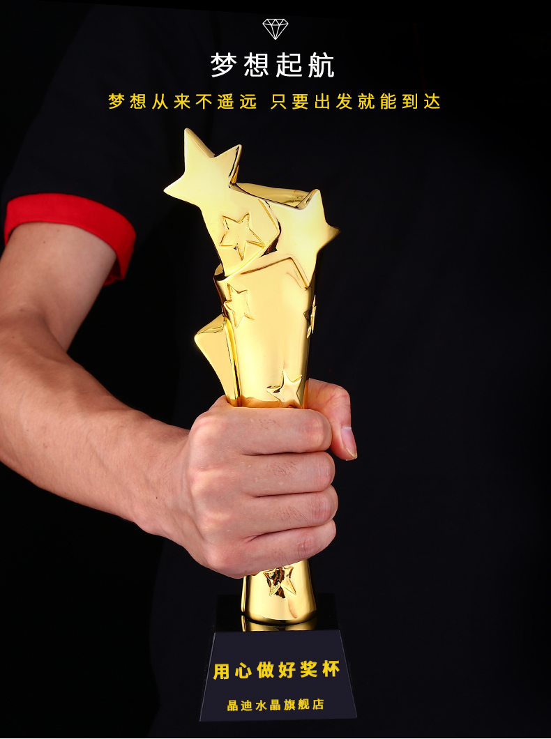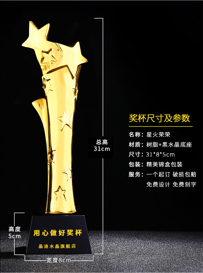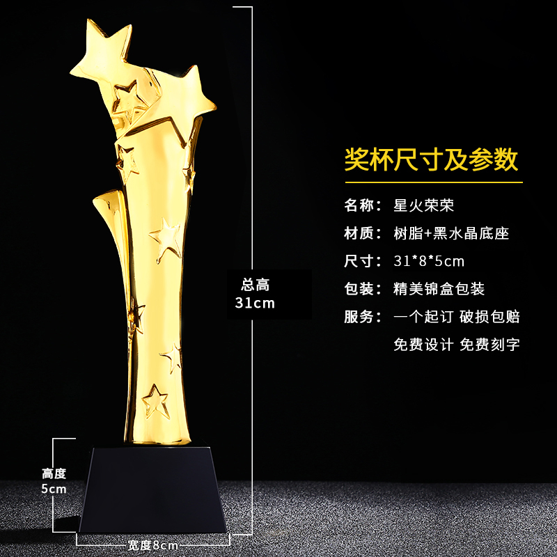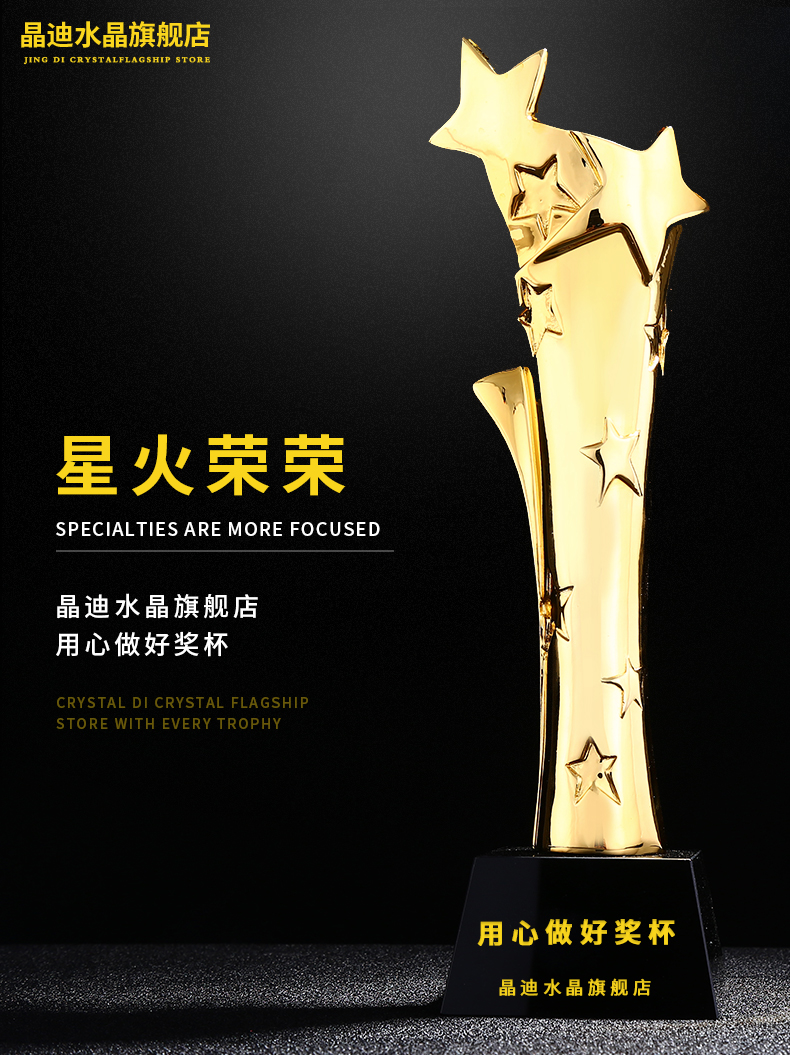 星火荣荣镀金奖杯 创意奖杯专业定制 企业员工颁奖礼品订制