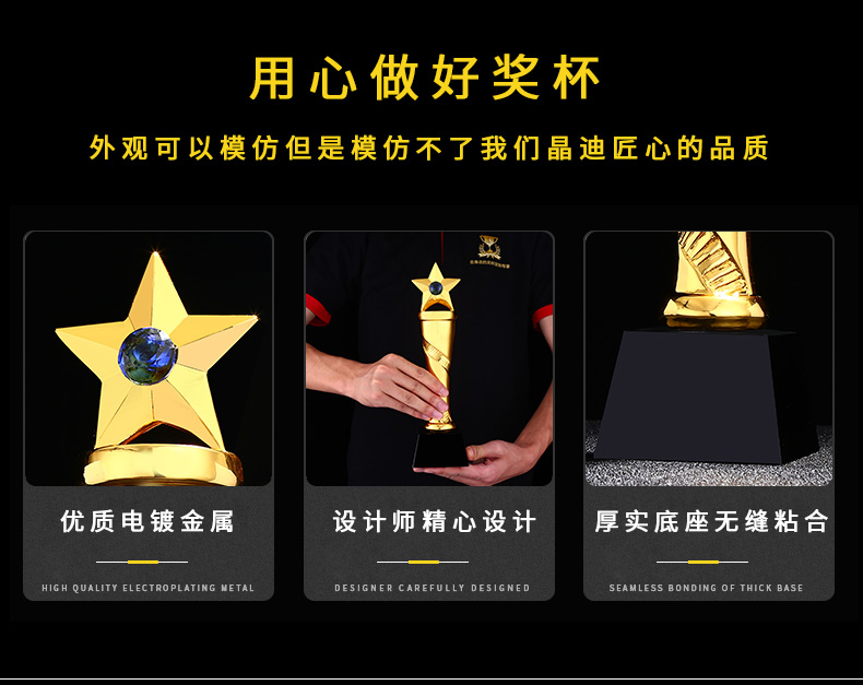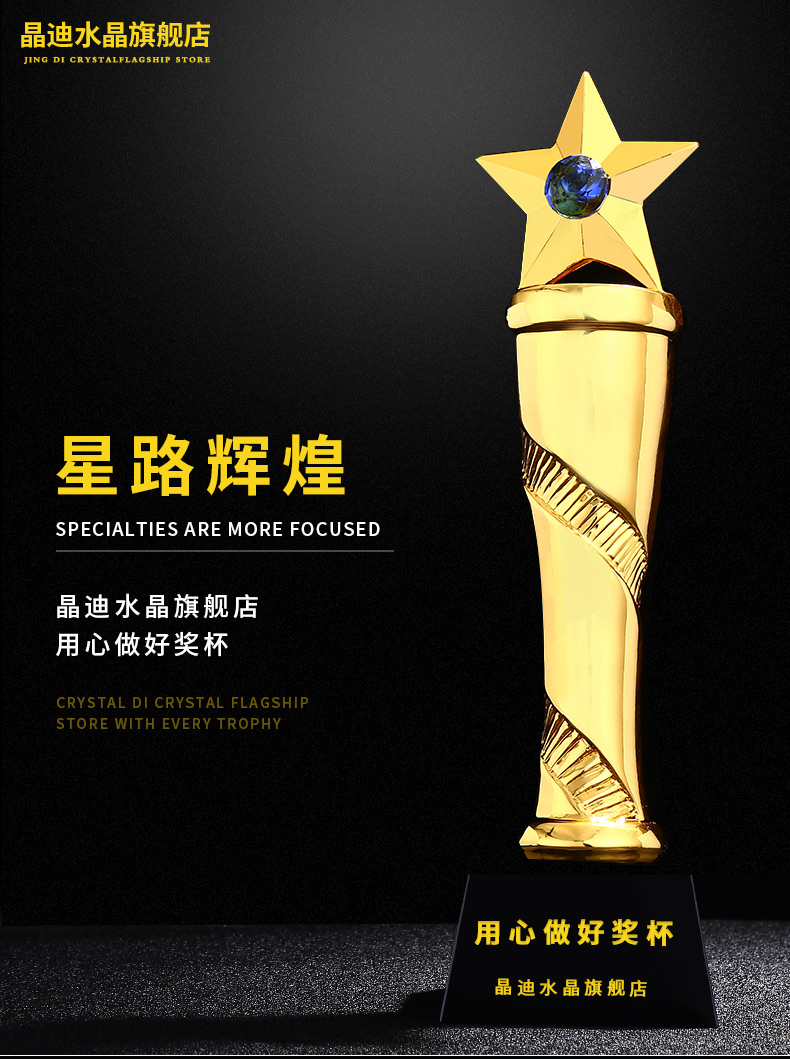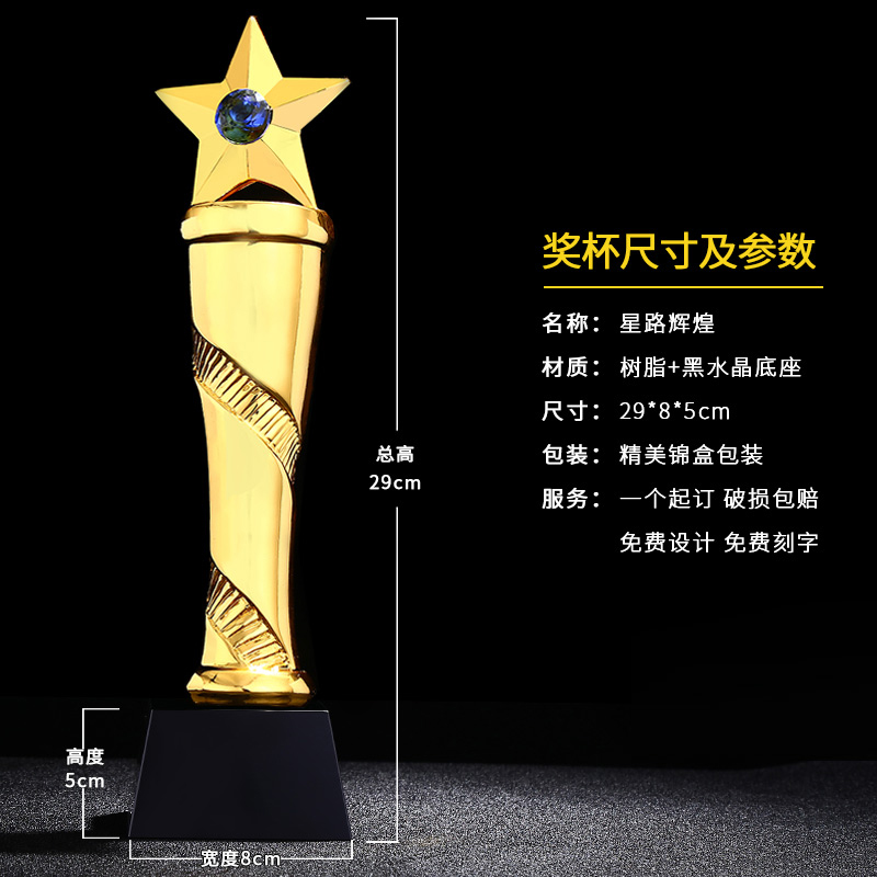 星路辉煌镀金奖杯 创意奖杯专业定制 企业员工颁奖礼品订制