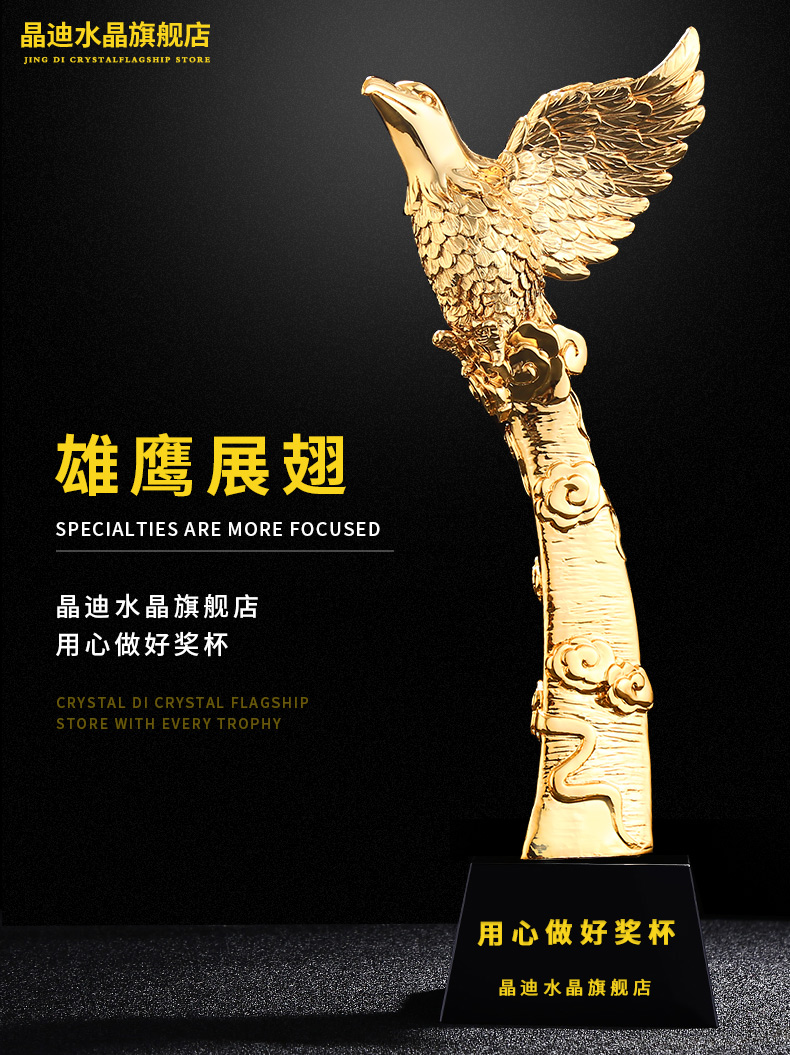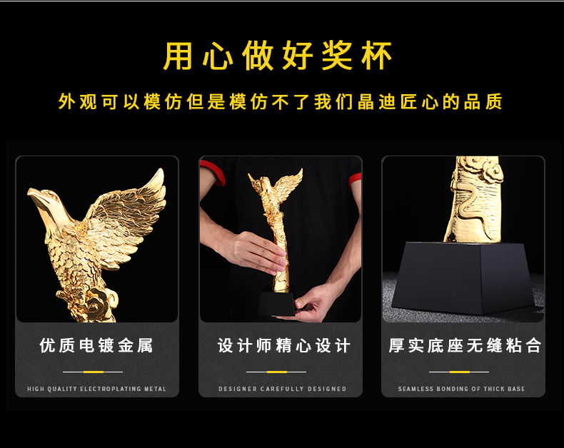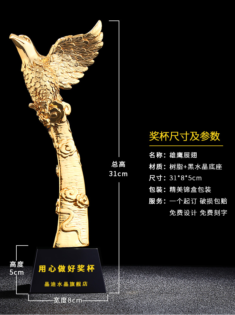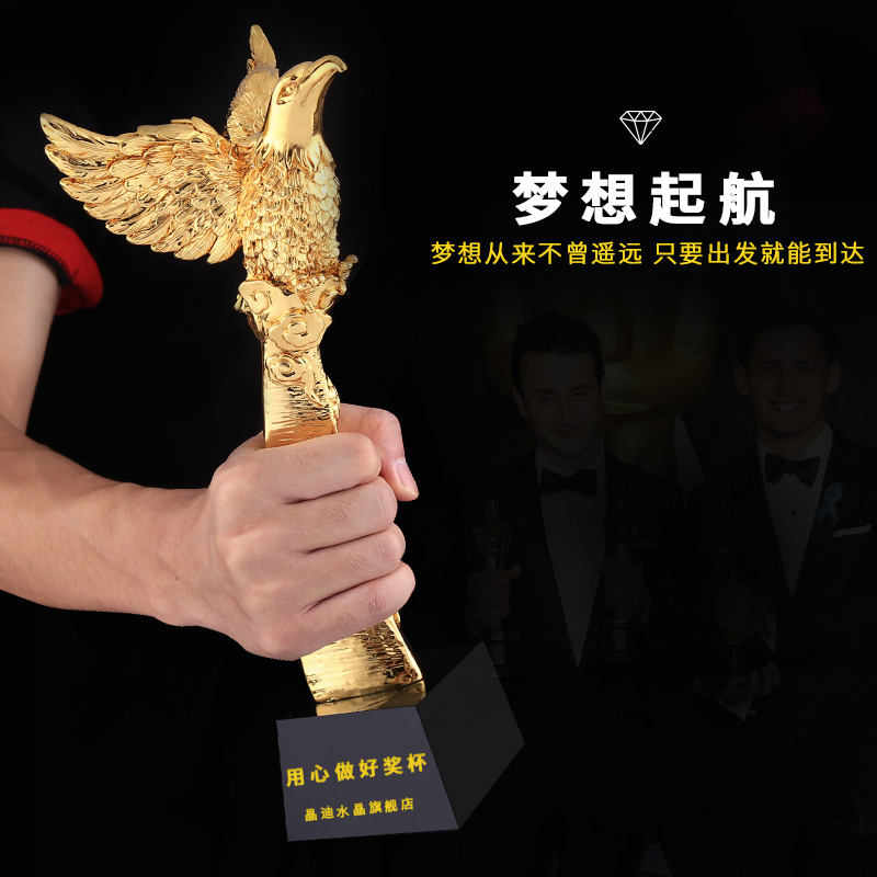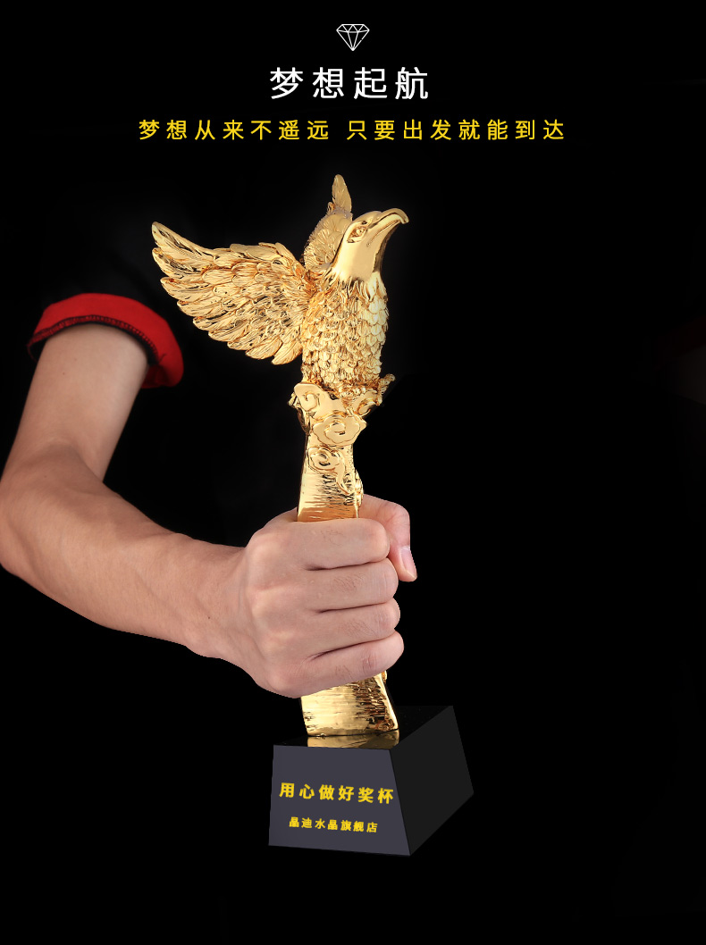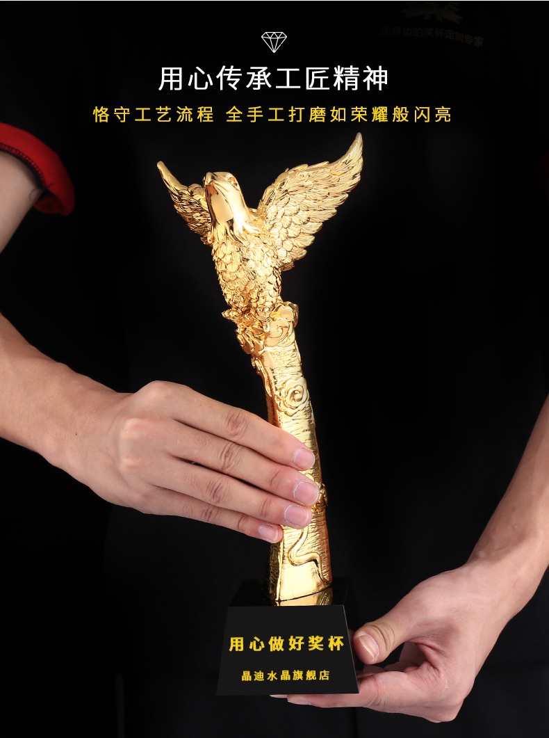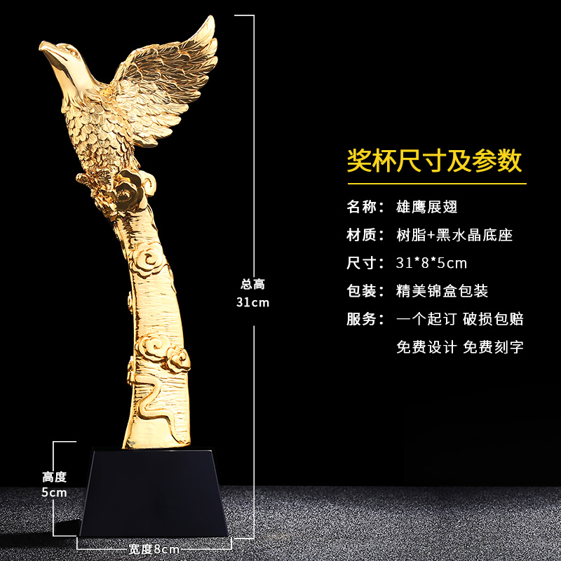 雄鹰展翅 镀金奖杯 创意奖杯专业定制 企业员工颁奖礼品订制