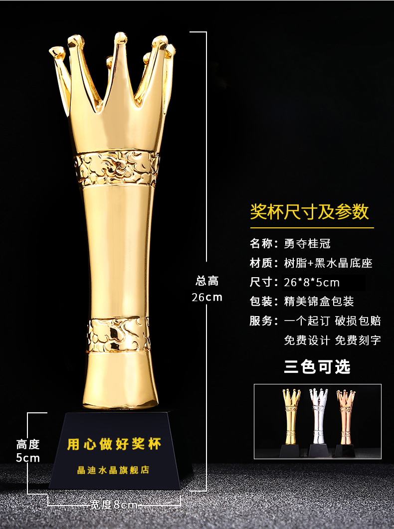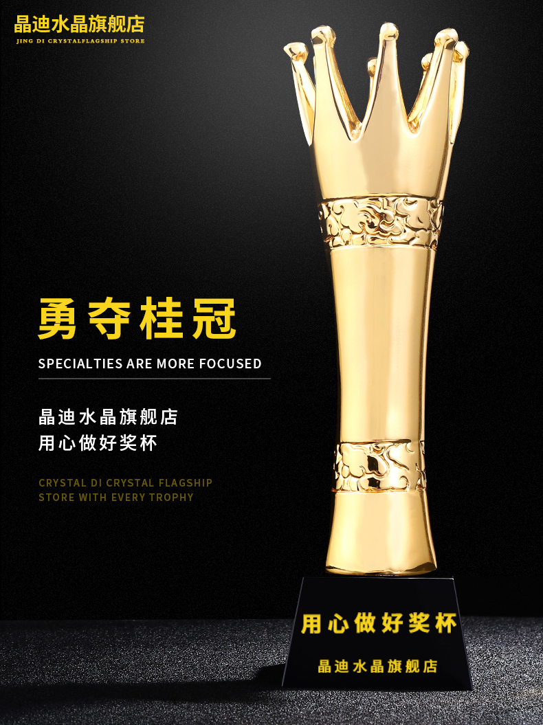 勇夺桂冠 镀金奖杯 创意奖杯专业定制 企业员工颁奖礼品订制