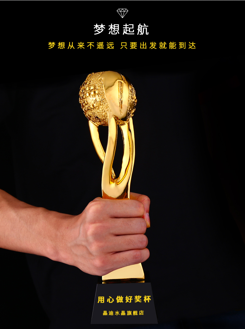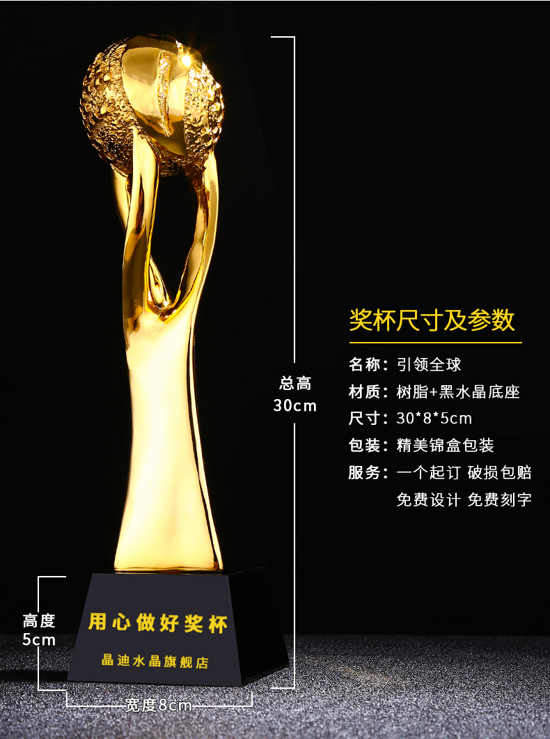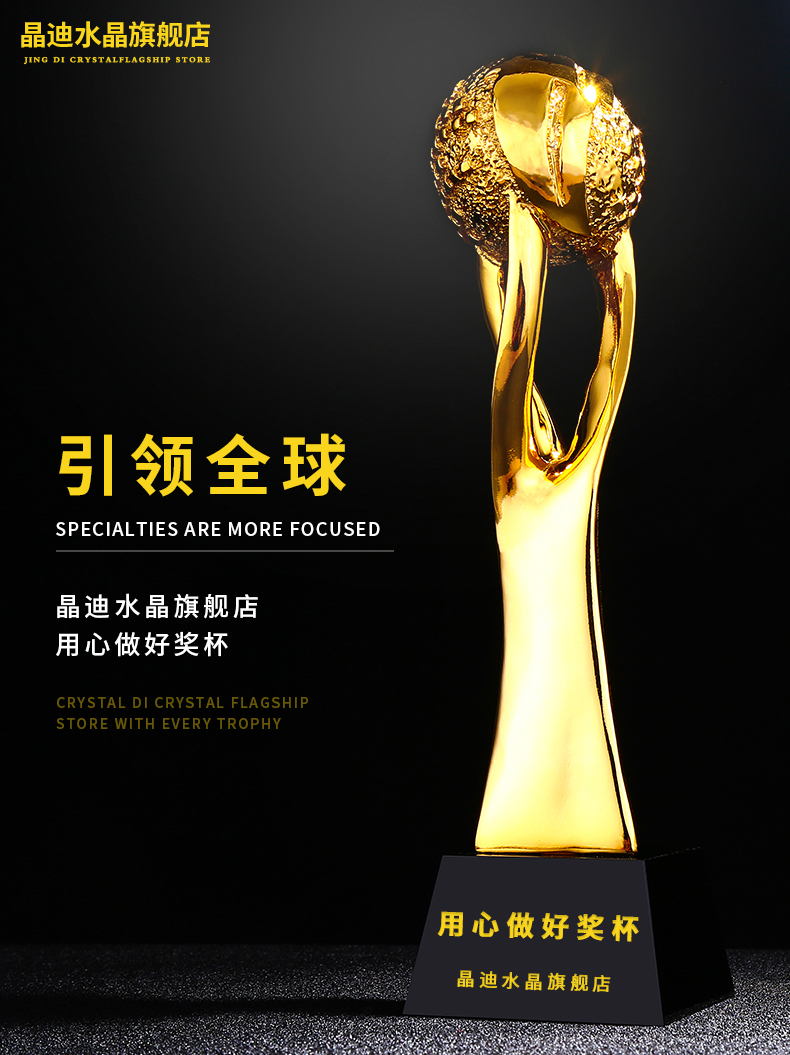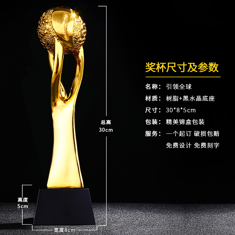 引领全球 镀金奖杯 创意奖杯专业定制 企业员工颁奖礼品订制