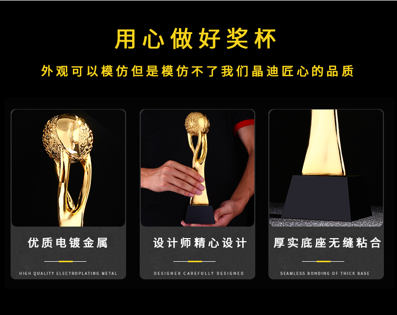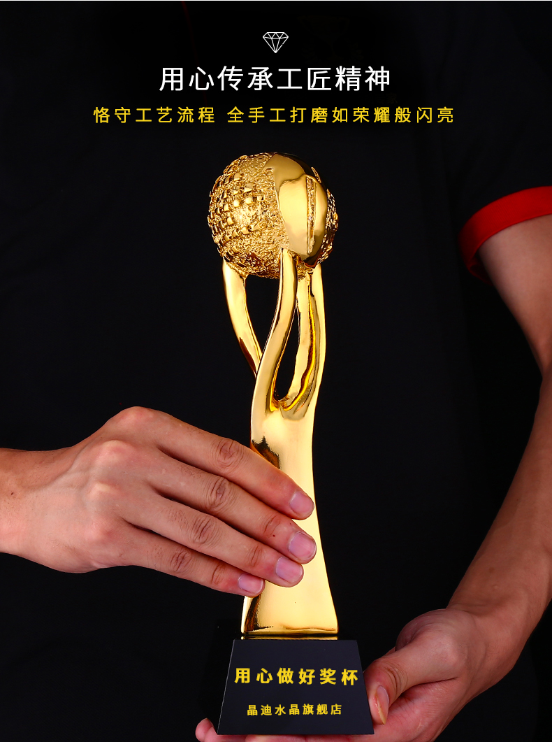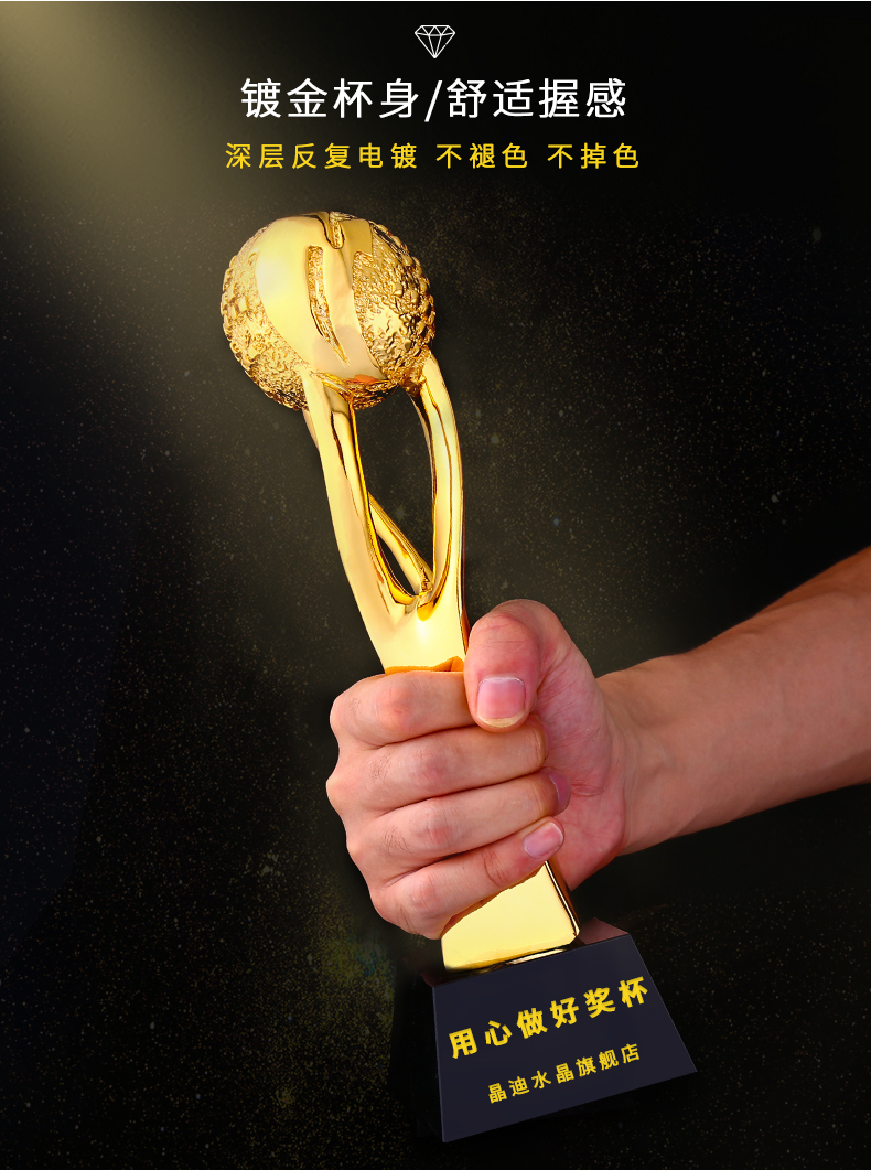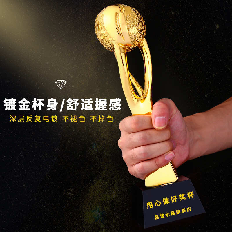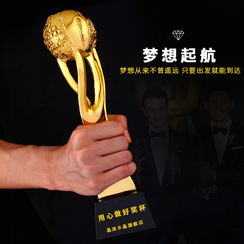 引领全球 镀金奖杯 创意奖杯专业定制 企业员工颁奖礼品订制