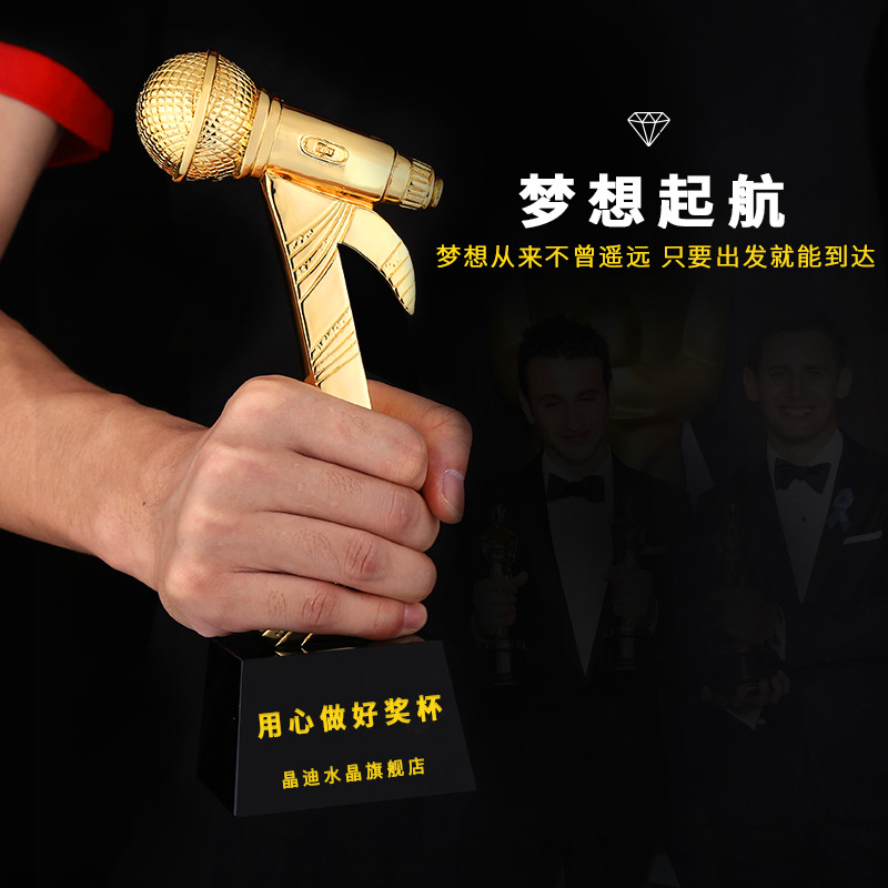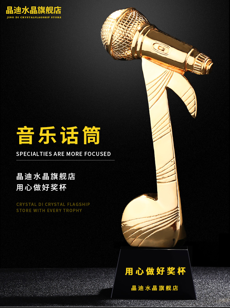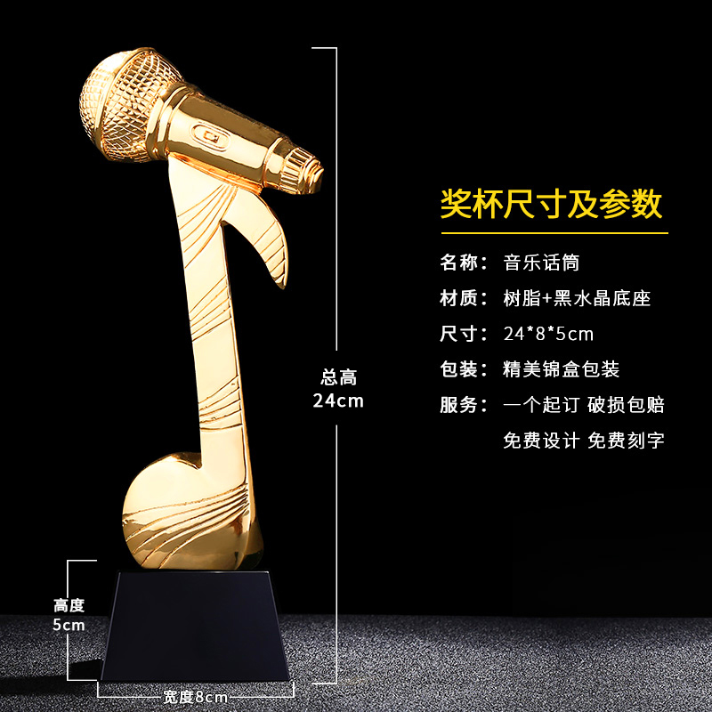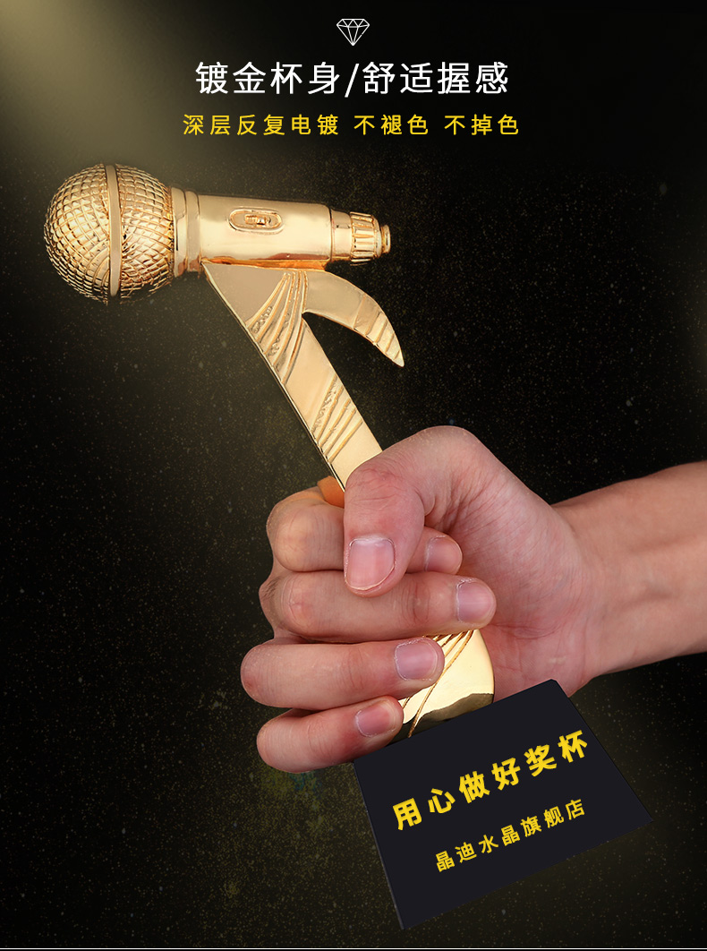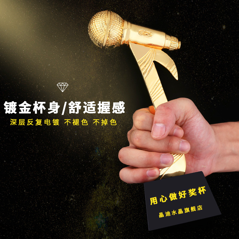 音乐话筒 镀金奖杯 创意奖杯专业定制 企业员工颁奖礼品订制