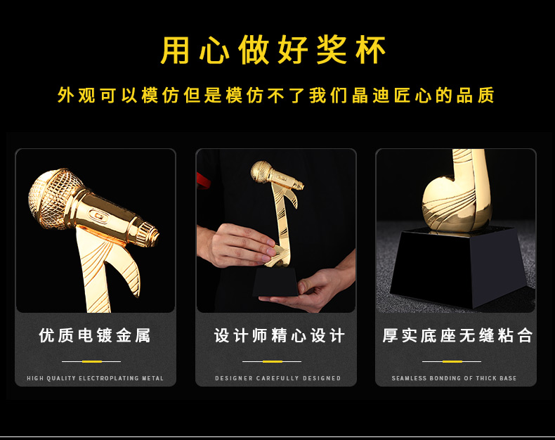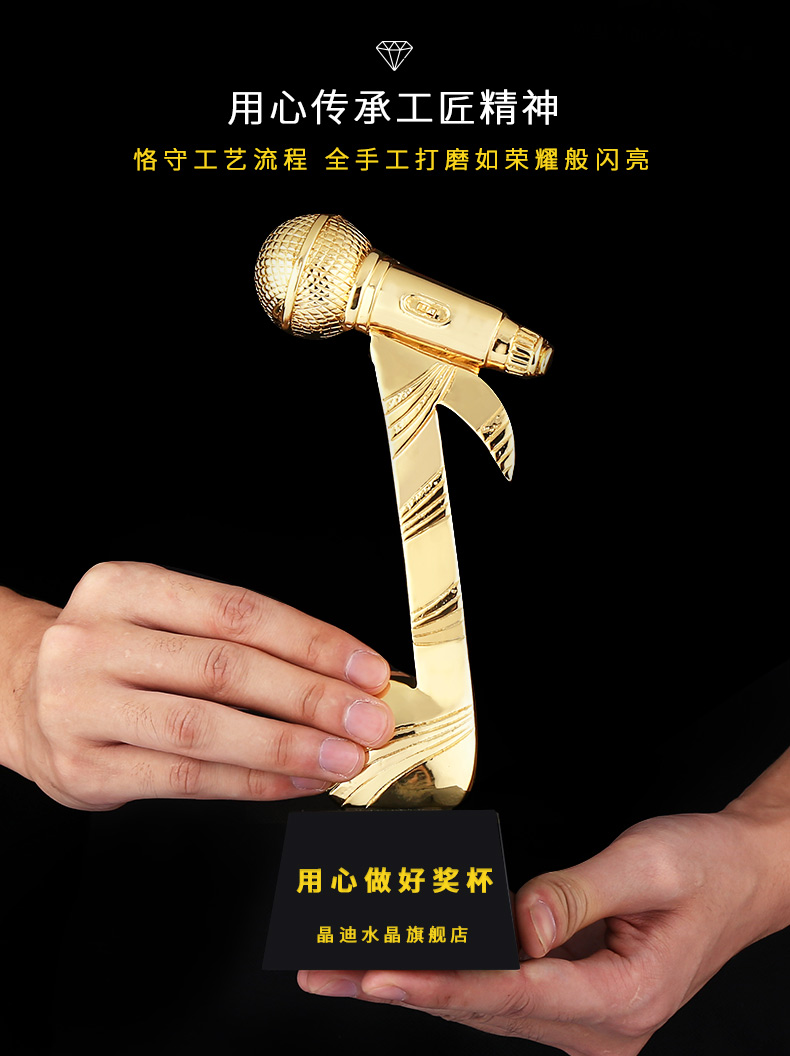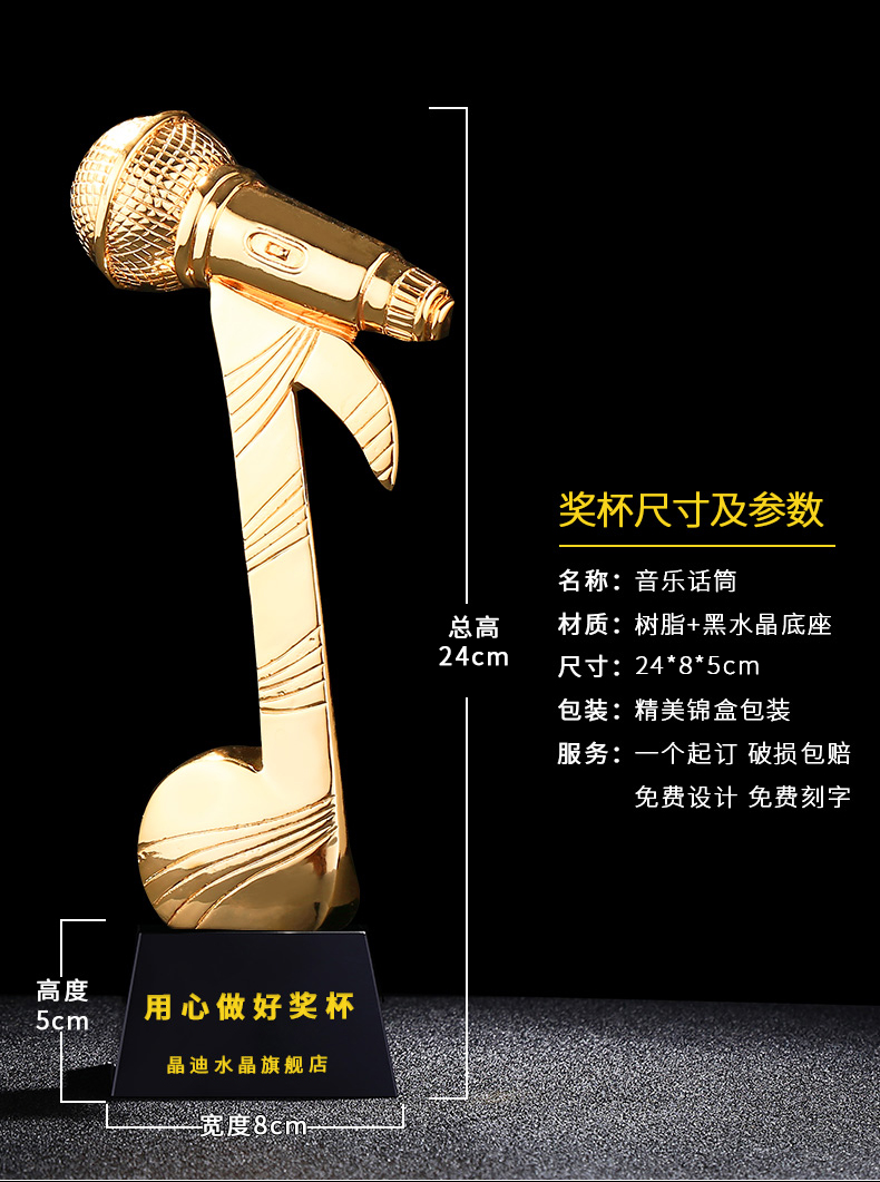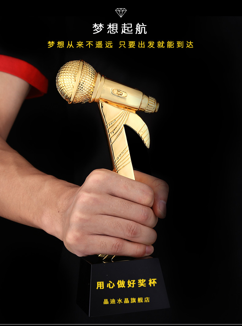 音乐话筒 镀金奖杯 创意奖杯专业定制 企业员工颁奖礼品订制