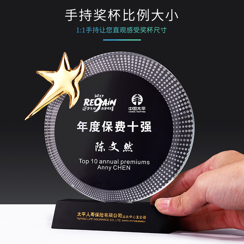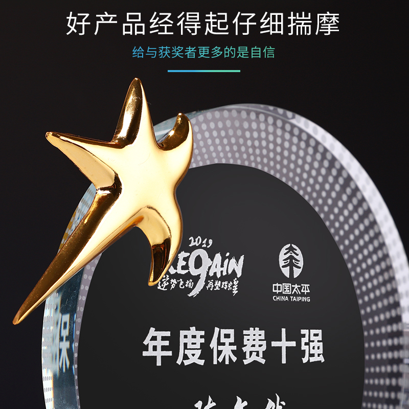 职场之星水晶奖杯定制创意免费刻字z公司职场个性纪念品奖牌定做