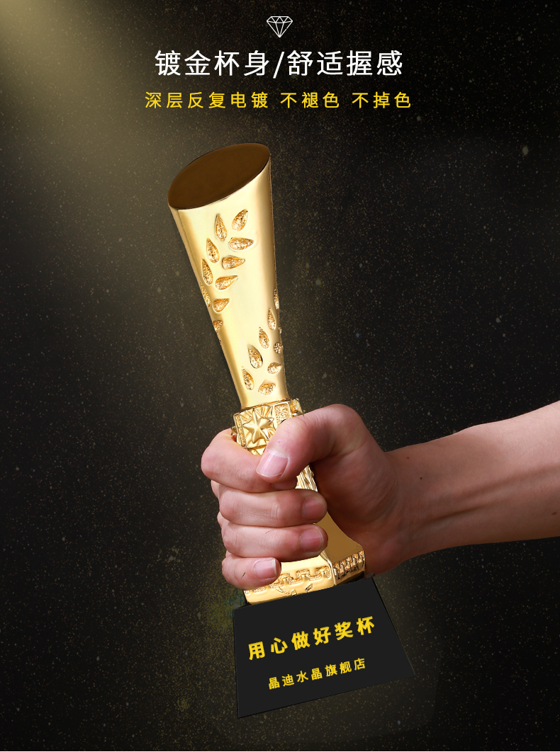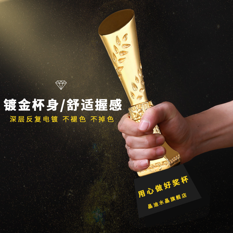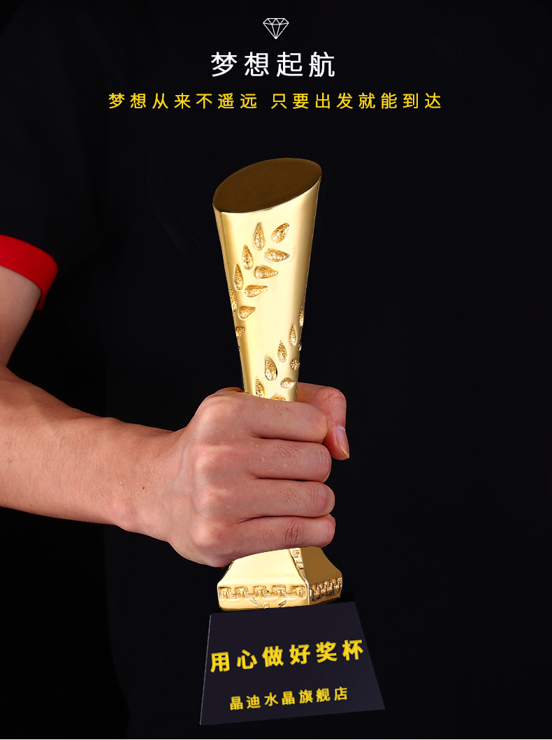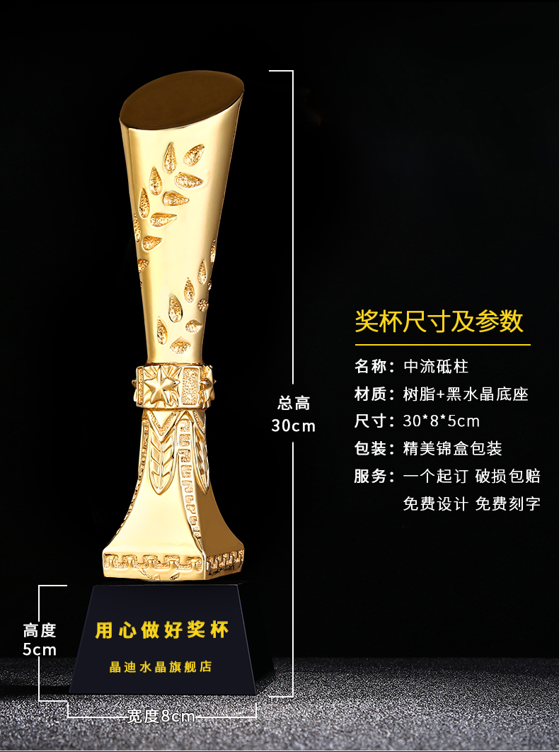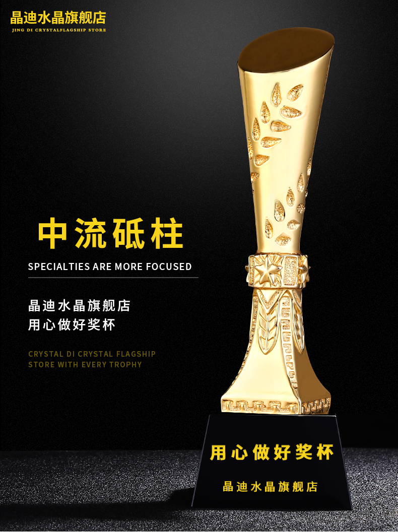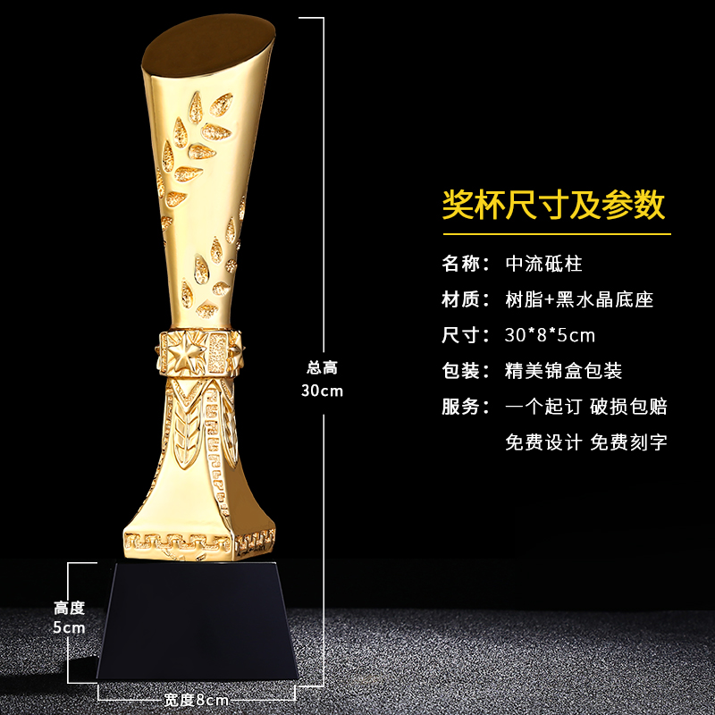 中流砥柱 镀金奖杯 创意奖杯专业定制 企业员工颁奖礼品订制