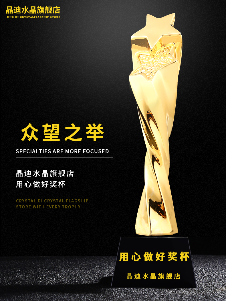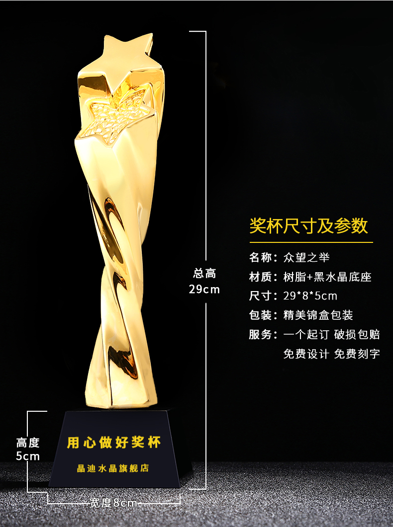 众望之举 镀金奖杯 创意奖杯专业定制 企业员工颁奖礼品订制