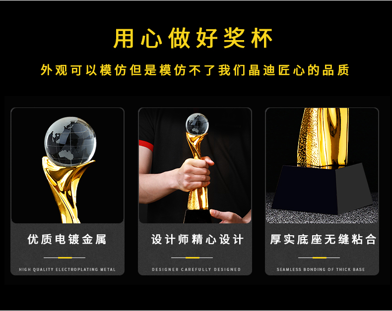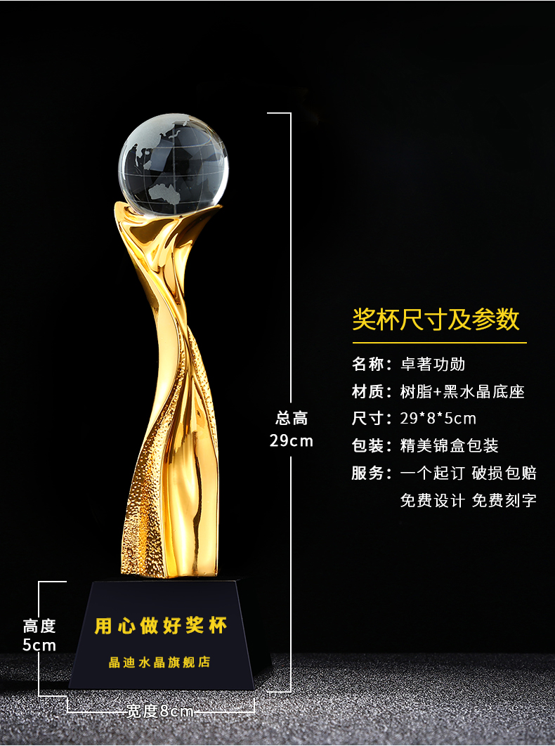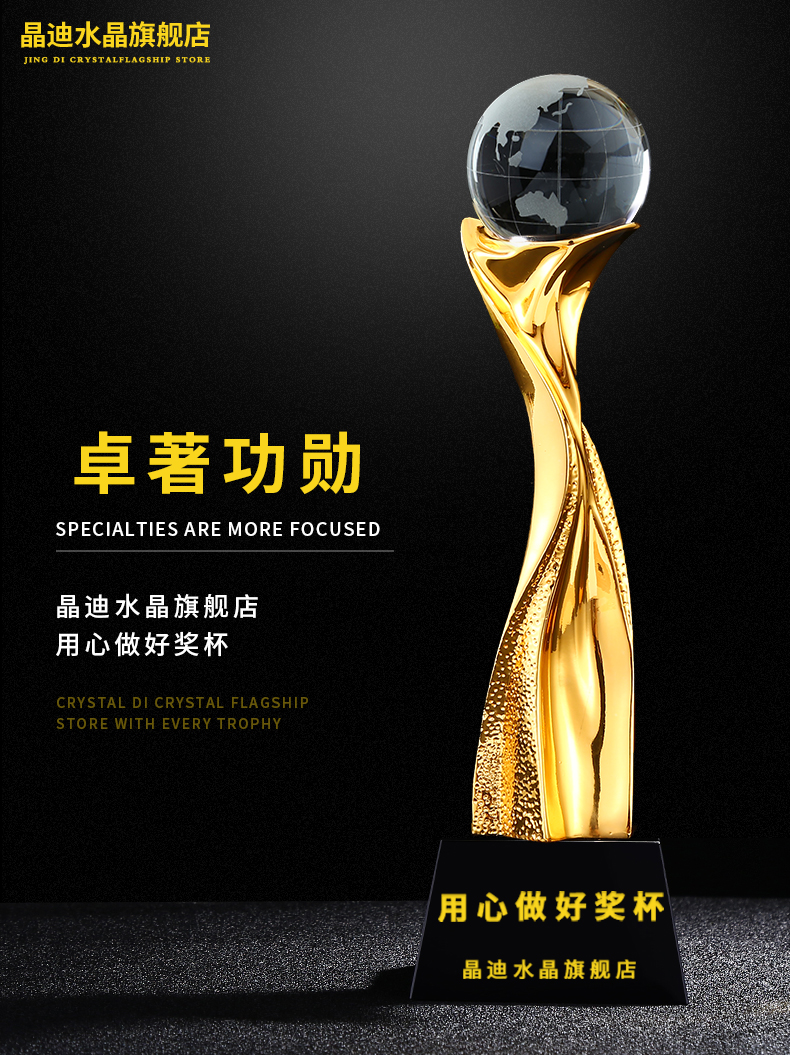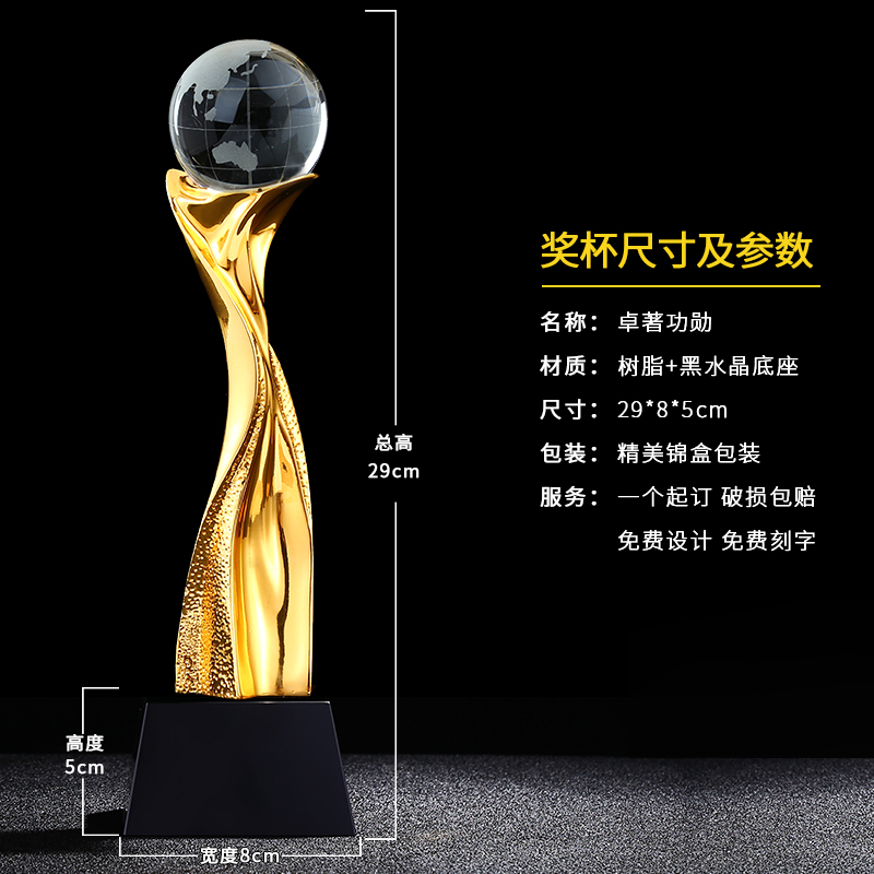卓著功勋镀金奖杯 创意奖杯专业定制 企业员工颁奖礼品订制